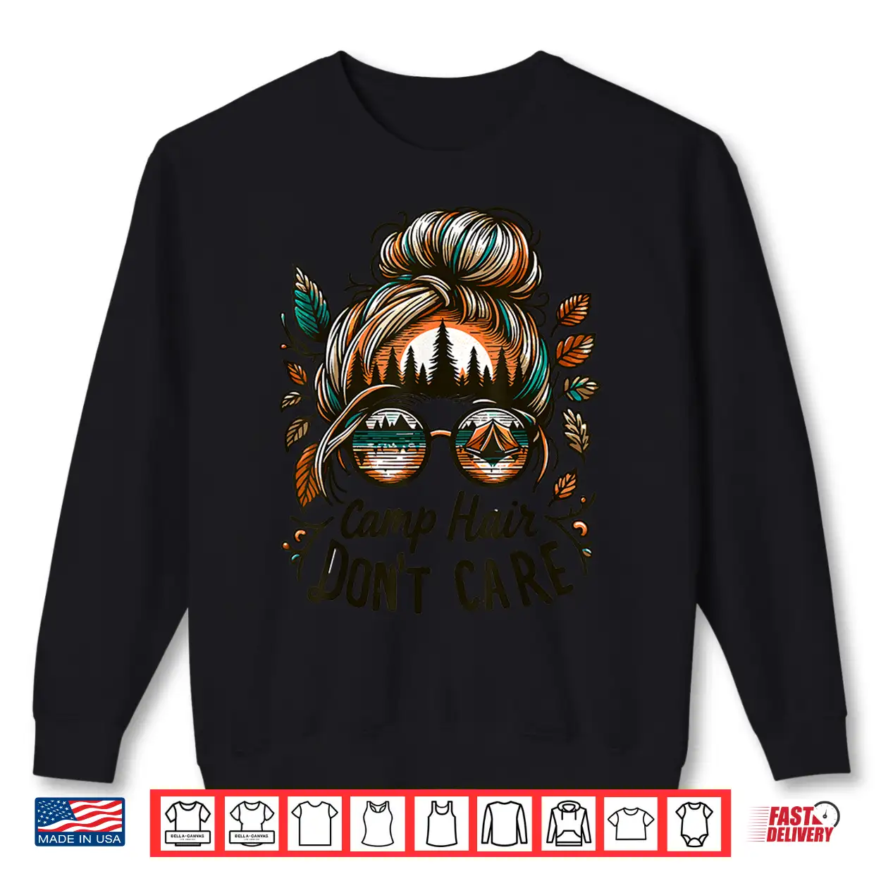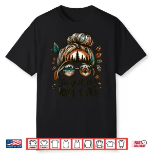 Camp Hair Don’T Care Messy Bun Funny Camping Camper Women Shirt