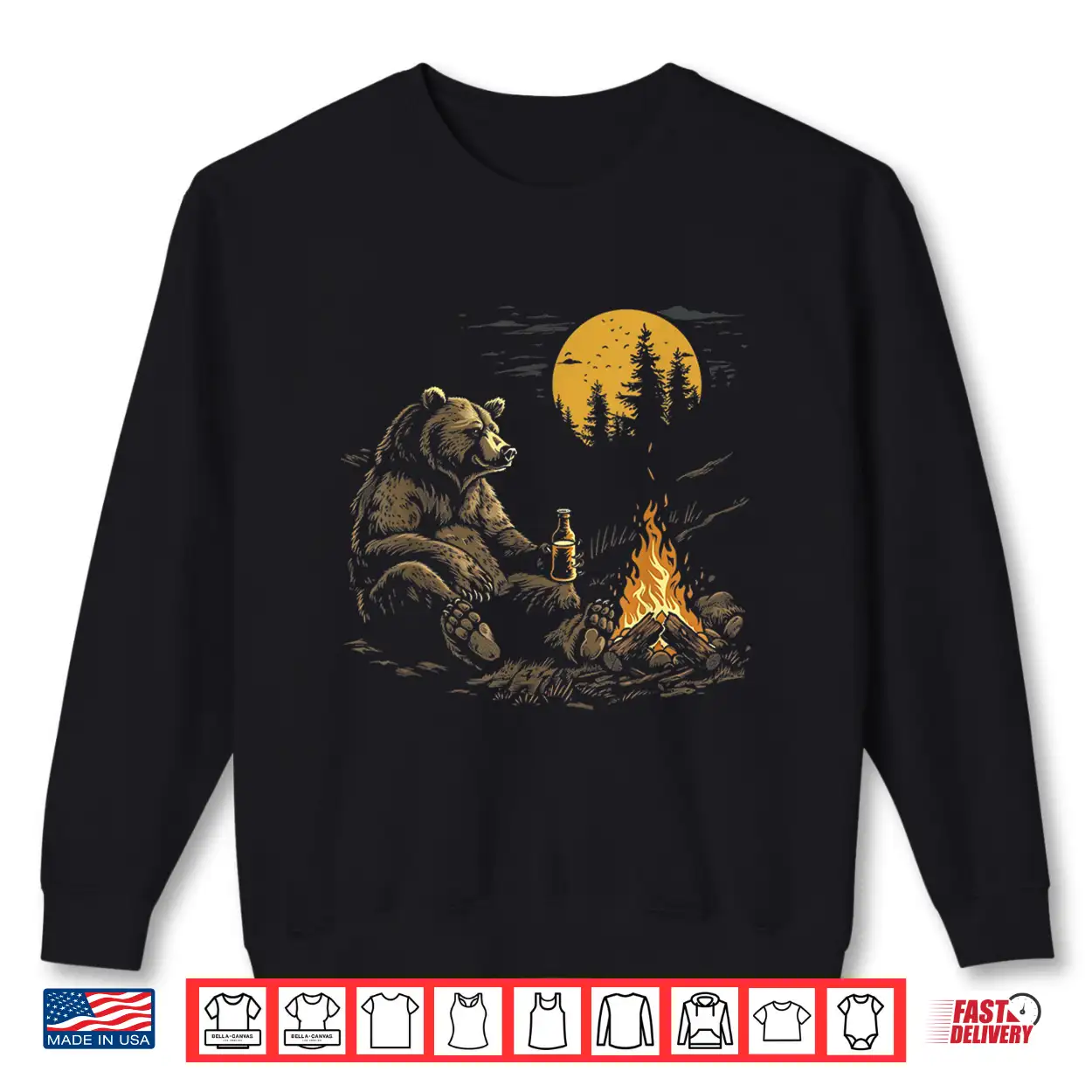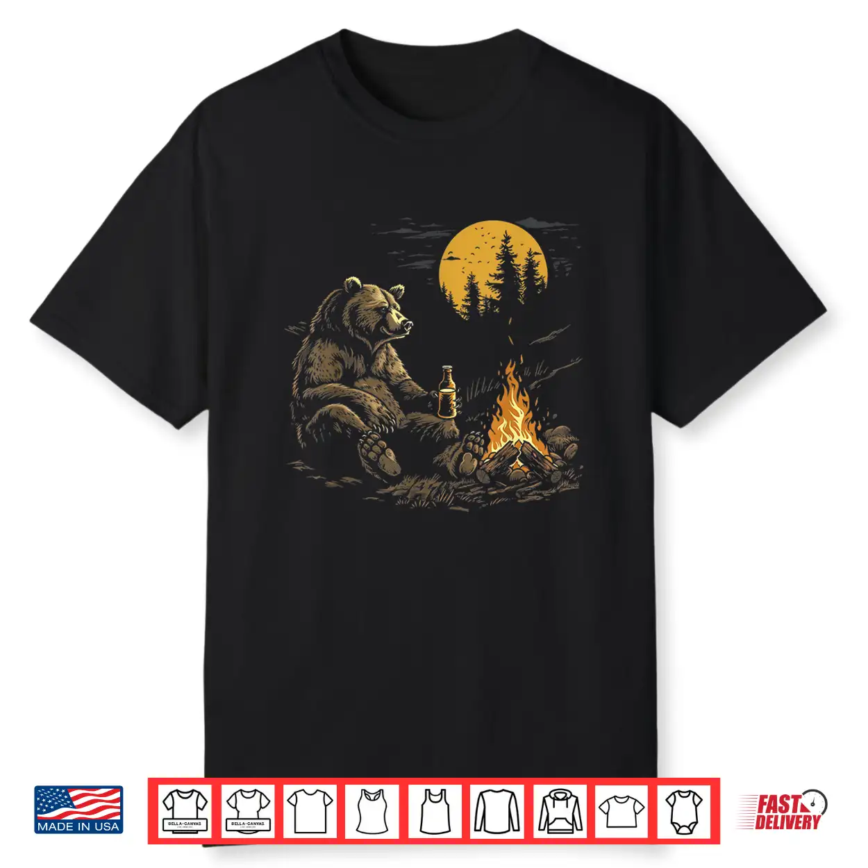 Camping Bear Drinking Beer Hiking Nature Funny Grizzly Shirt