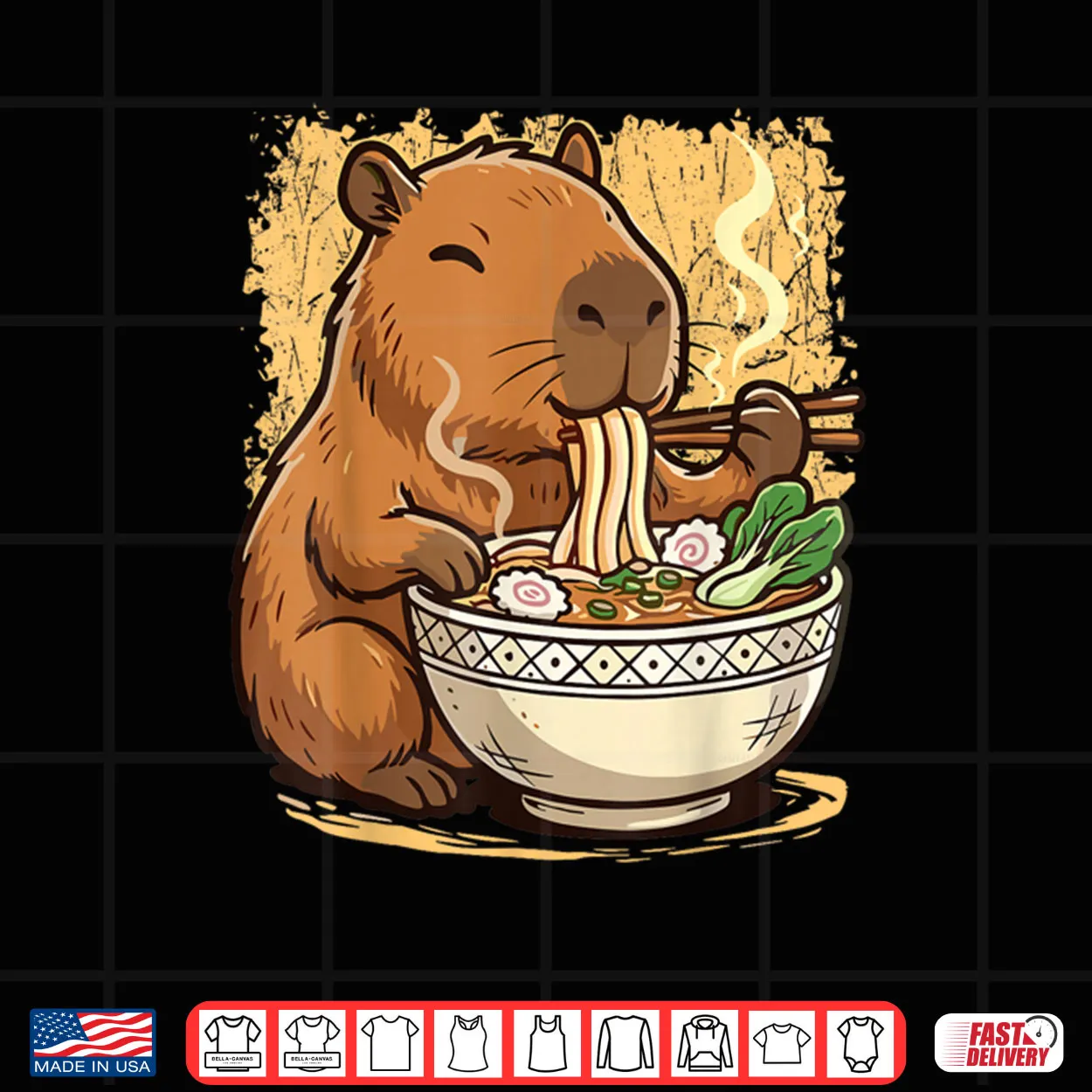 capybara ramen, eating noodles, cute animal, food humor, japanese art, rodent lover, funny capybara, ramen fan, quirky, shirt