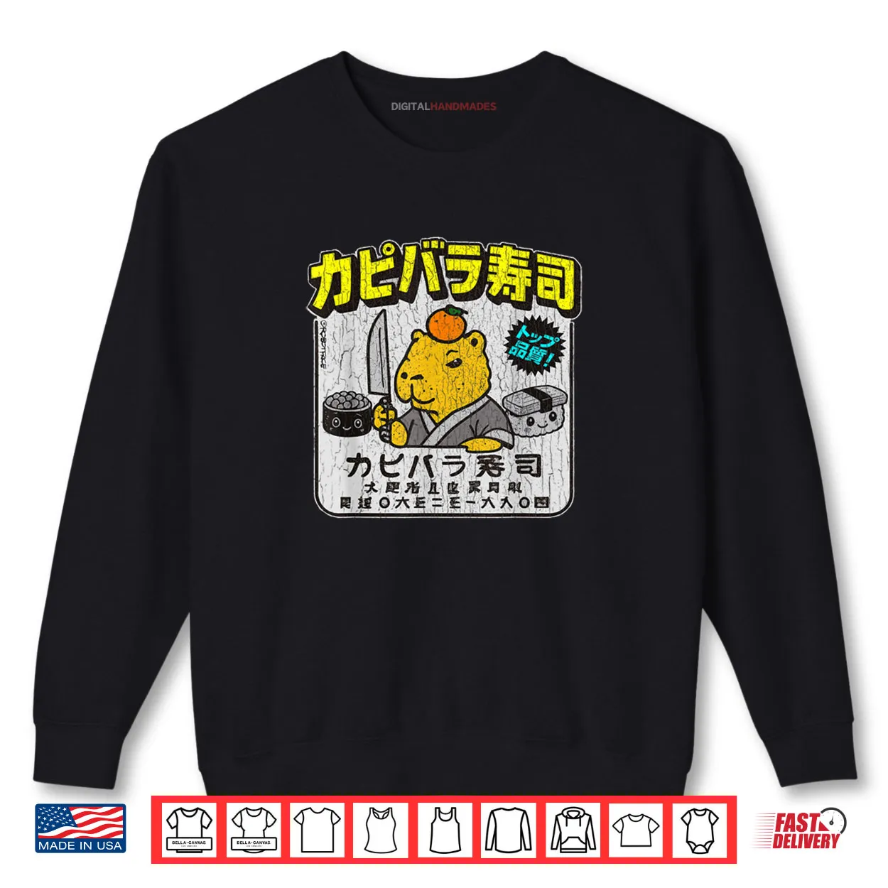 Capybara Sushi Chef Vintage Distressed Look Shirt