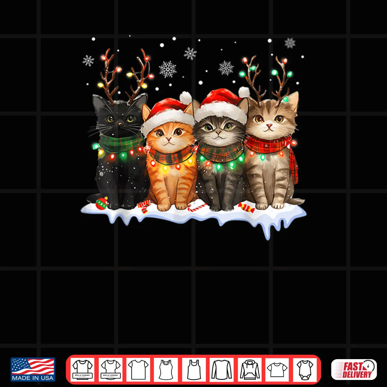 Cat Christmas Light Reindeer Santa Christmas Cat Lover Shirt