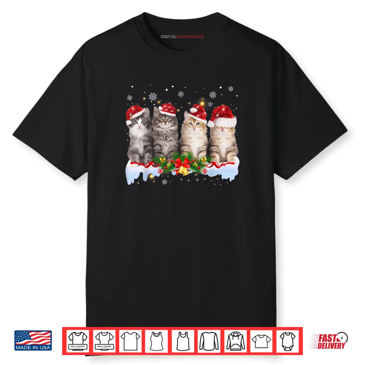 Cat Christmas Light Santa Hat Xmas Decorations Meowy Catmas Shirt