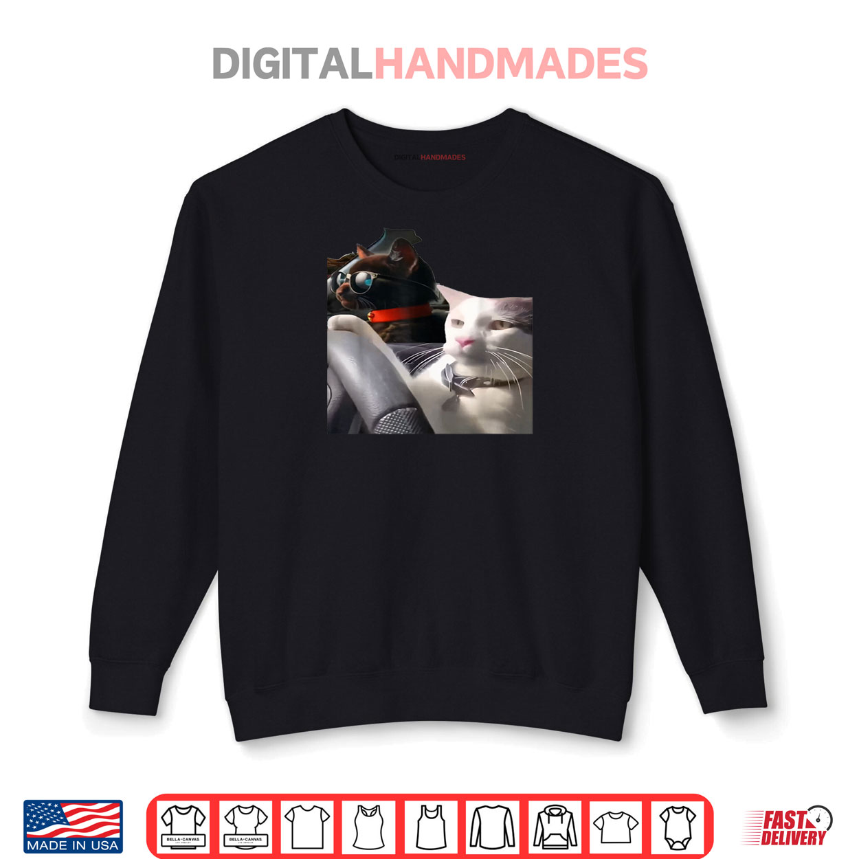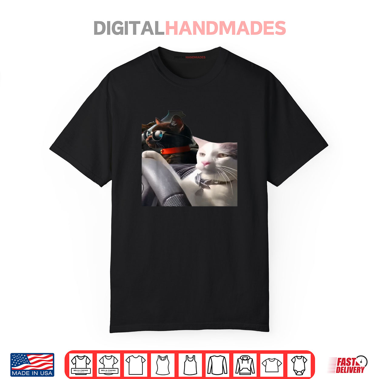 cat driving meme tee, funny animal car humor, quirky feline driver shirt, internet cat meme shirt, absurd pet graphic tee, zoom zoom kitty shirt, viral cat joke tee, weird cat humor design, cute funny cat shirt, roadtrip cat meme apparel