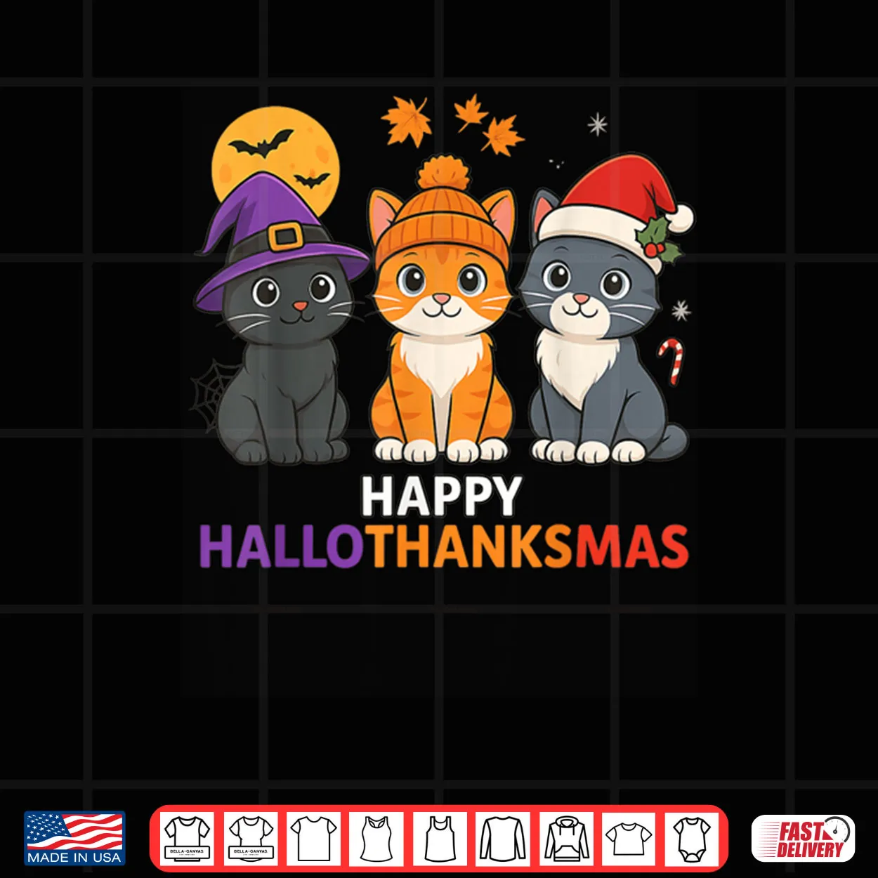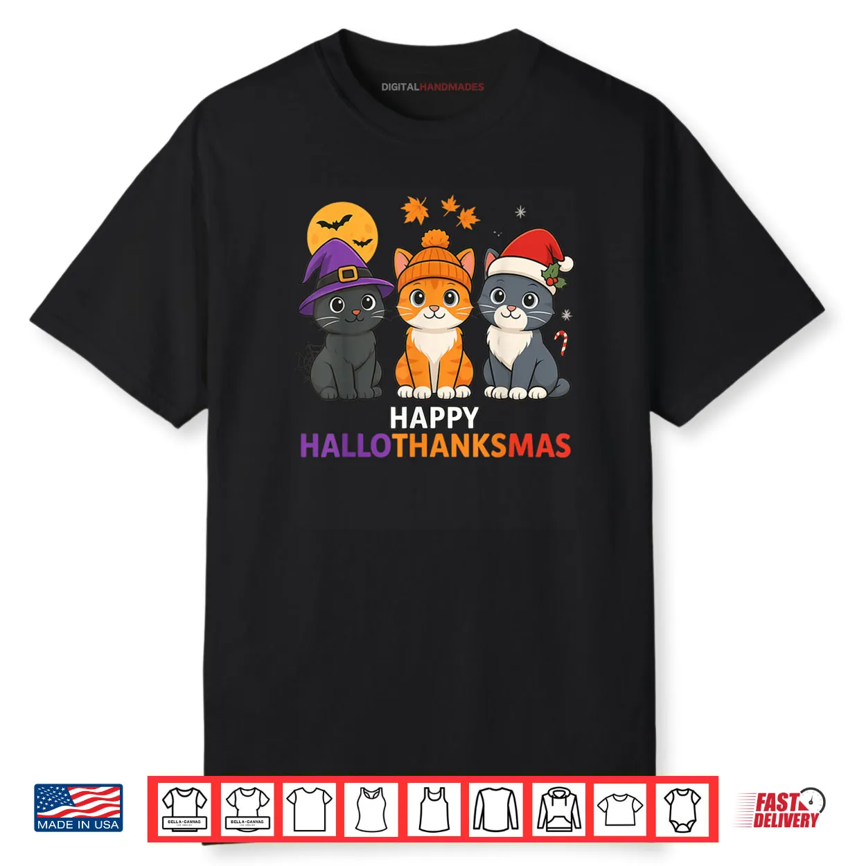Cat Halloween Christmas Happy Hallothanksmas Thanksgiving Shirt