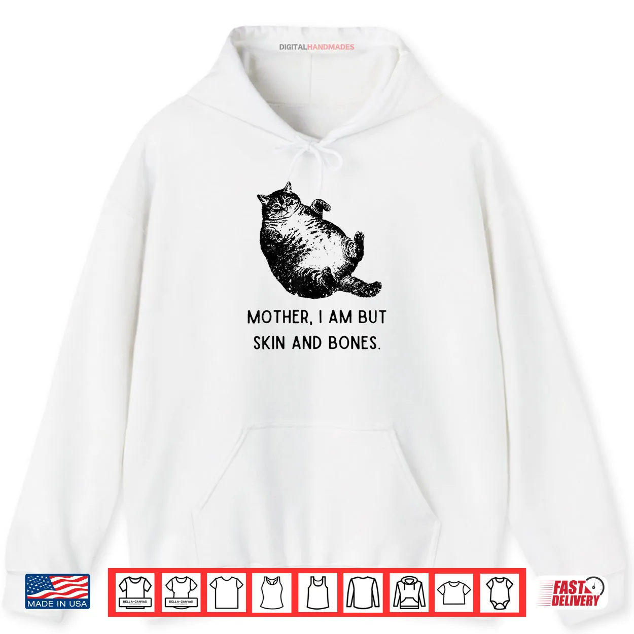 cat mother, skin and bones, hungry cat, funny pet, cat lover, witty quote, feline humor, dramatic cat, animal lover, shirt