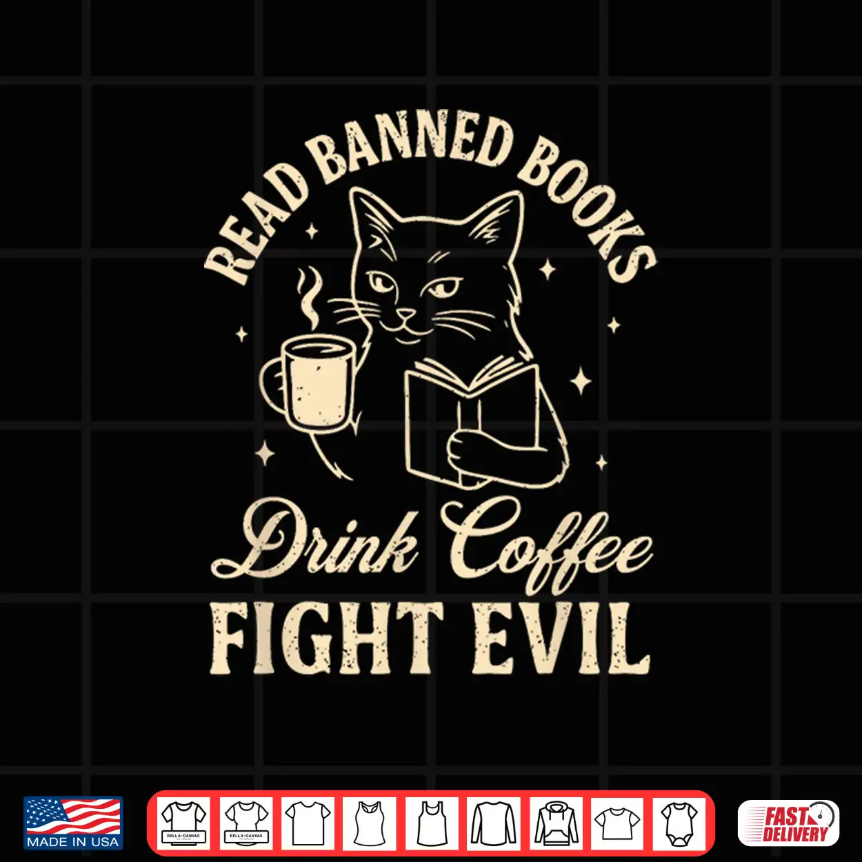 Cat Read Banned Books Drink Coffee Fight Evil Shirt