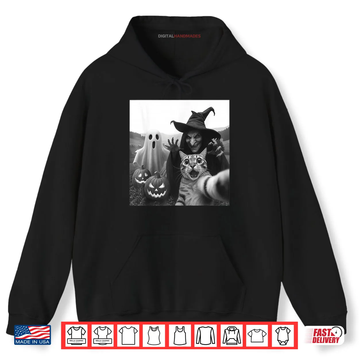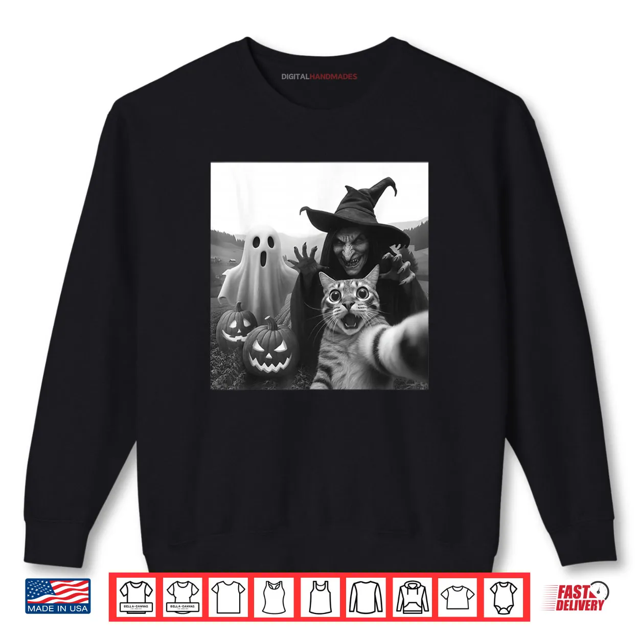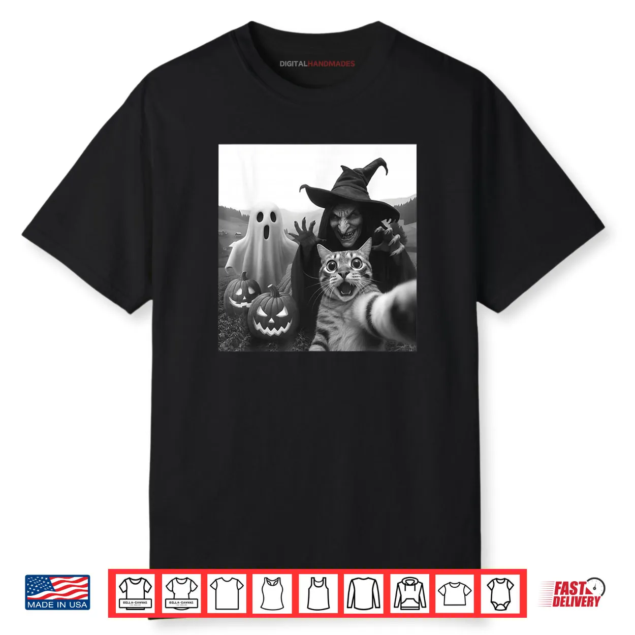 Cat Selfie with Ghost Boo Witch Pumpkin Halloween Shirt