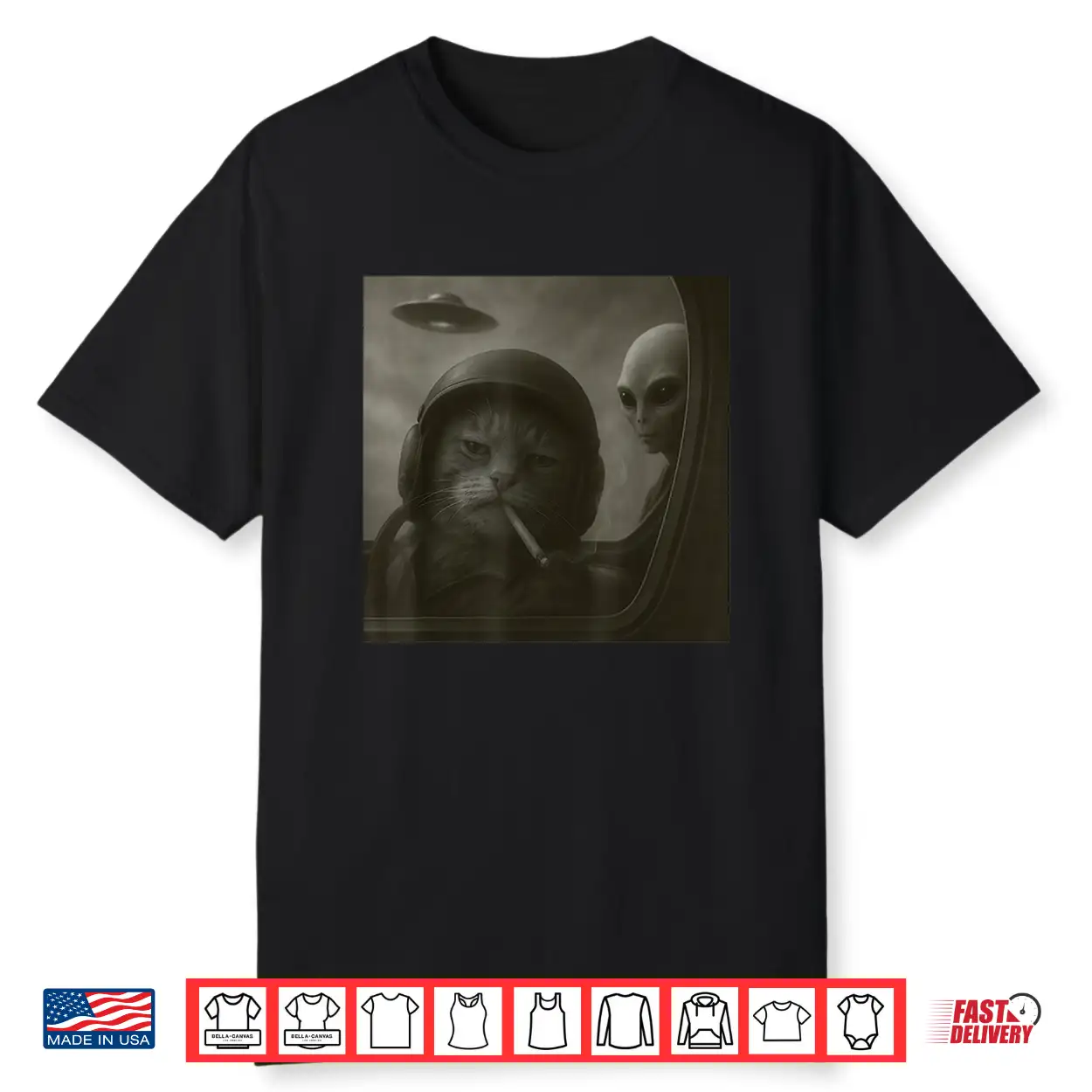 Cat Smoking Cigarette Alien Pilot Funny Meme Cat Shirt