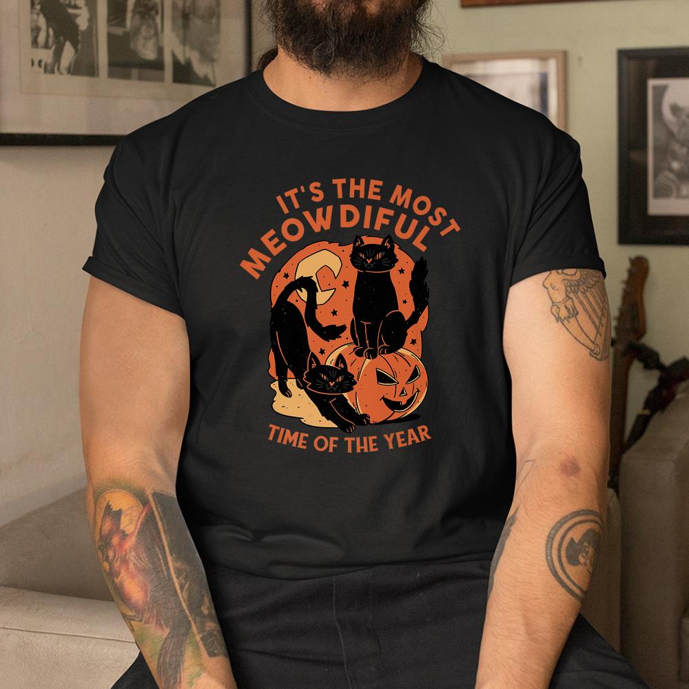 Cats With Pumpkins The Most Meowdiful Time Halloween Shirt, hoodie, sweatshirt, long sleeve and ladies T-shirt