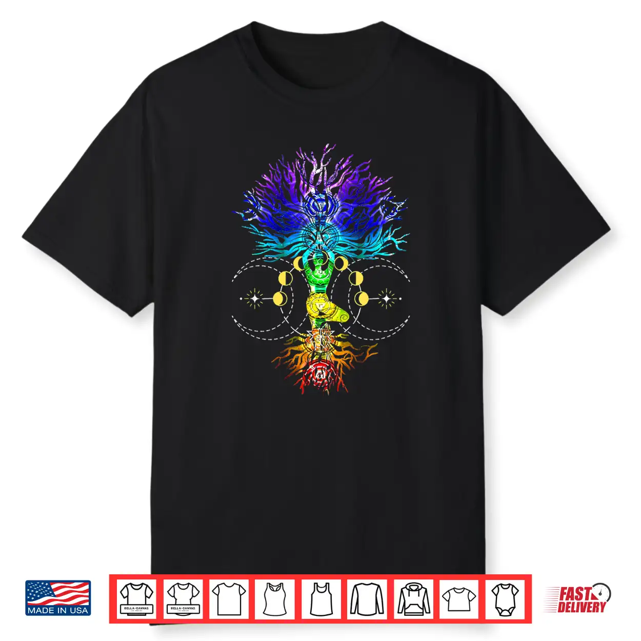Chakra Tree Of Life With Phases Of The Moon Hatha Yoga Shirt