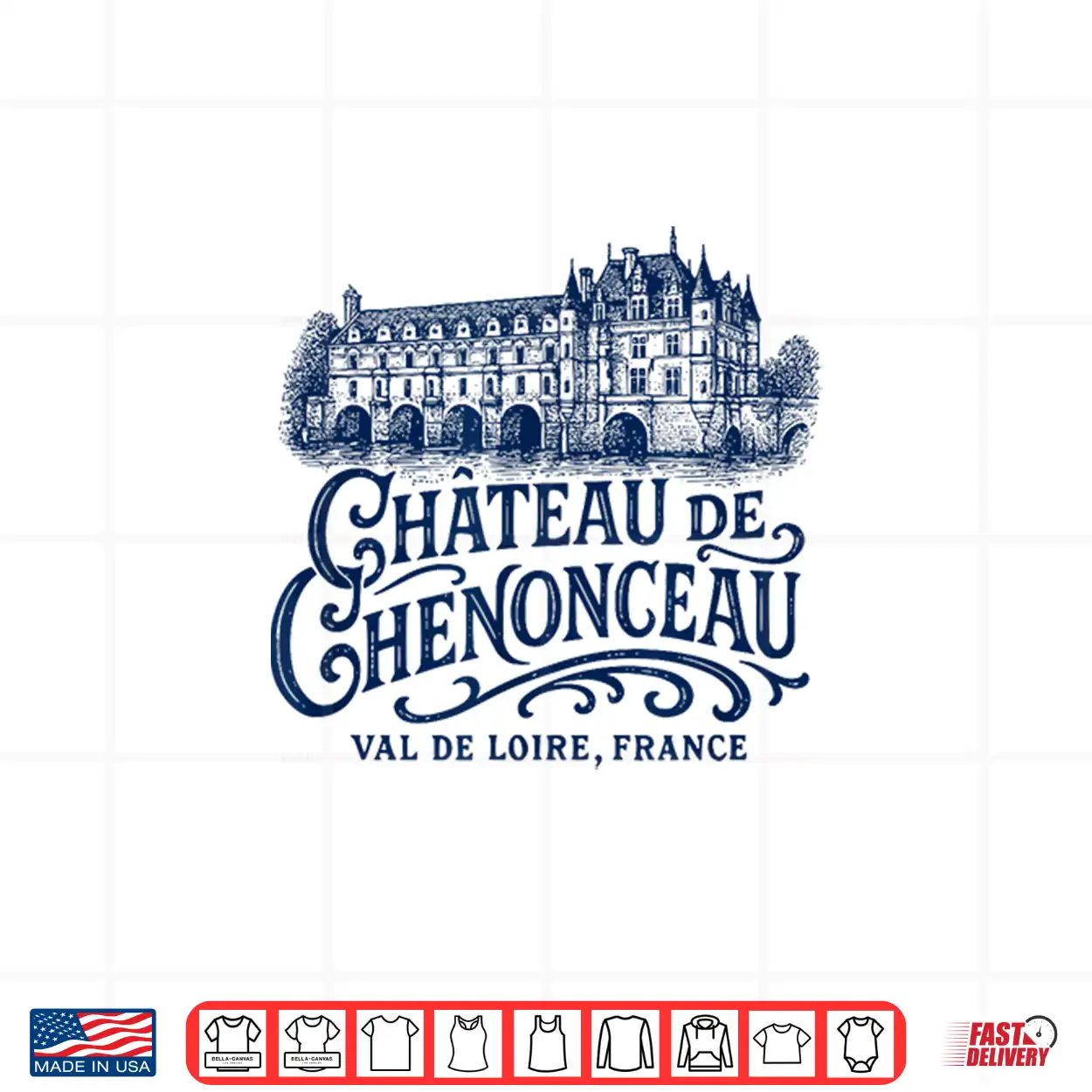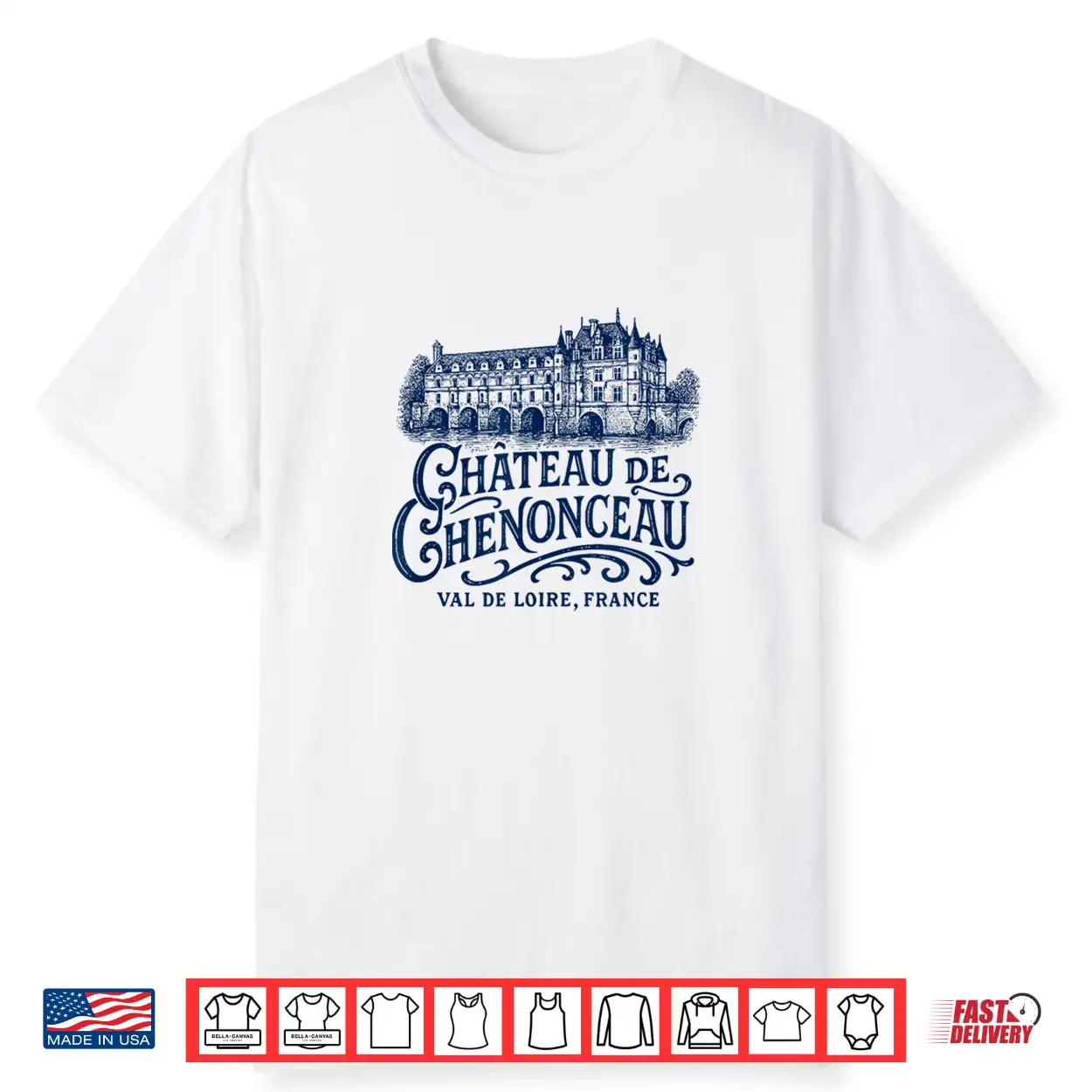 Château De Chenonceau Val De Loire France Navy Print Shirt