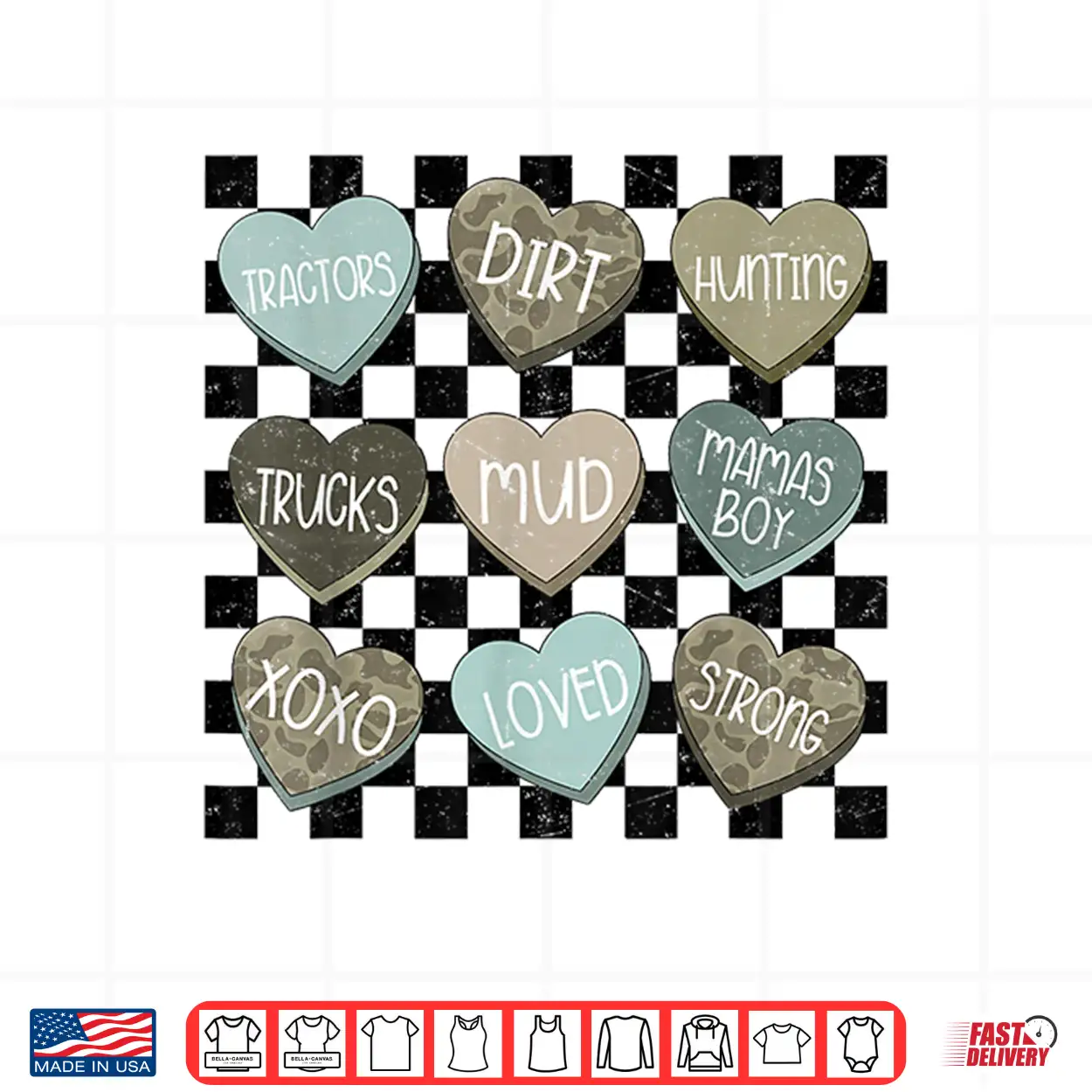 Checkered Camo Conversation Hearts Valentine’s Day Men Boys Shirt