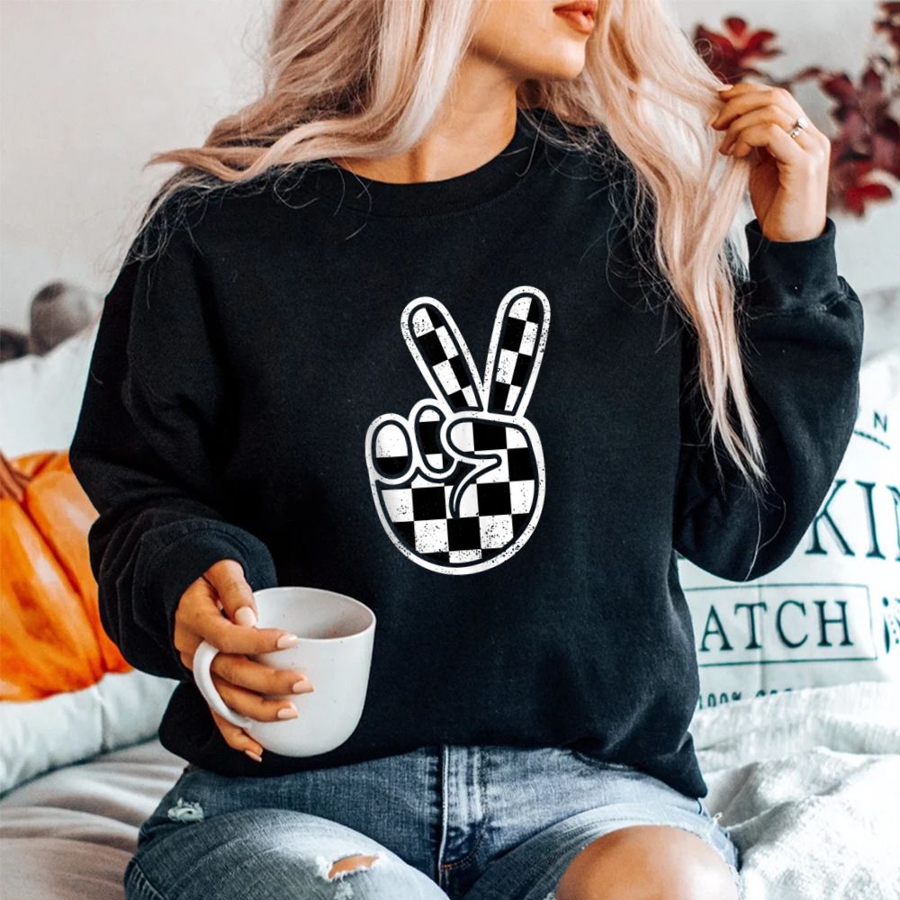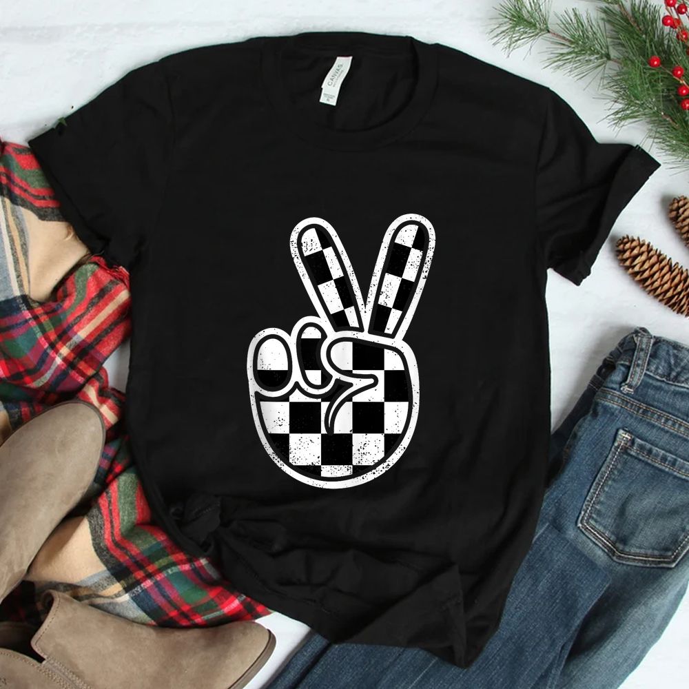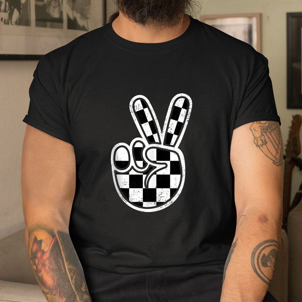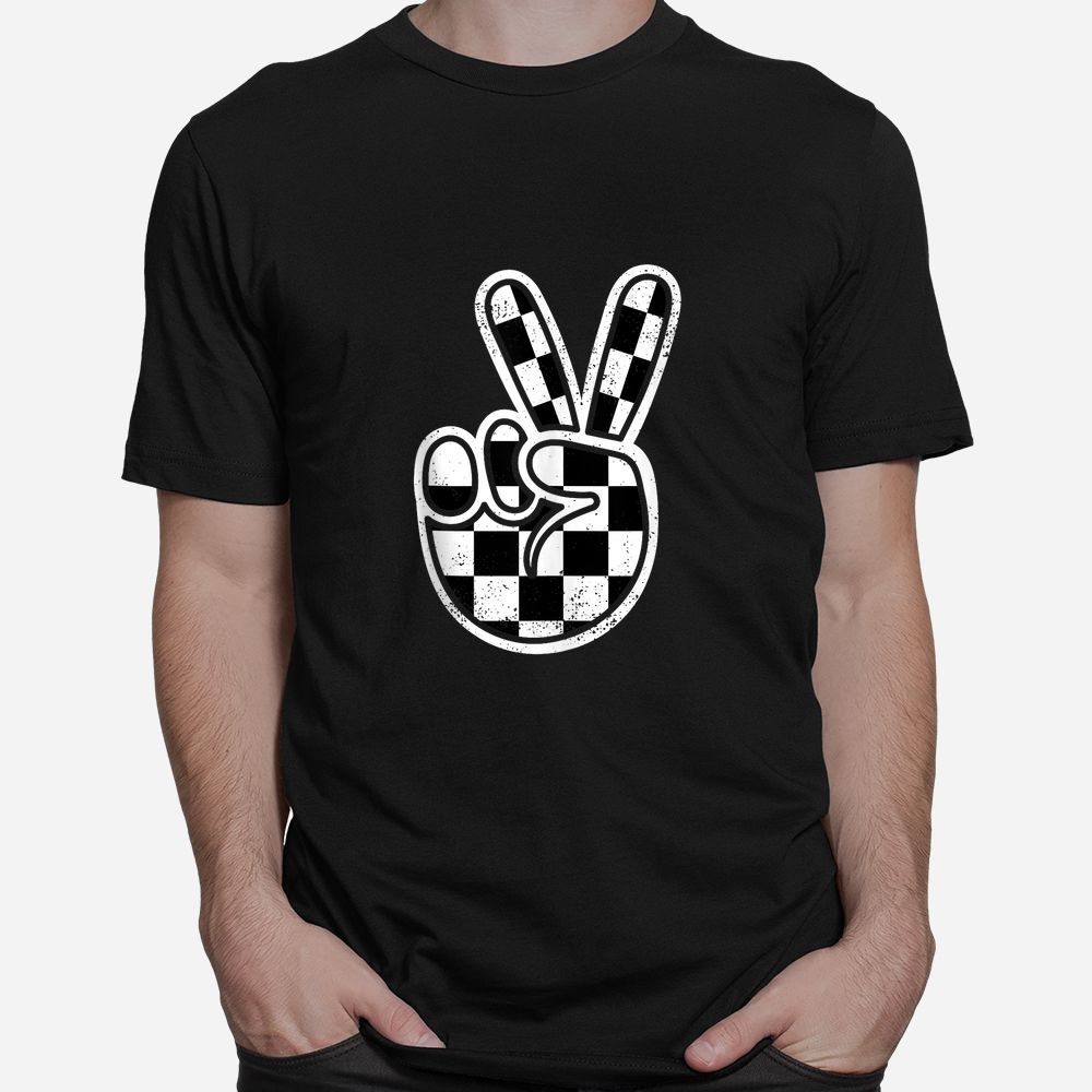 Checkered Peace Sign 60s 70s 80s Race Car Shirt