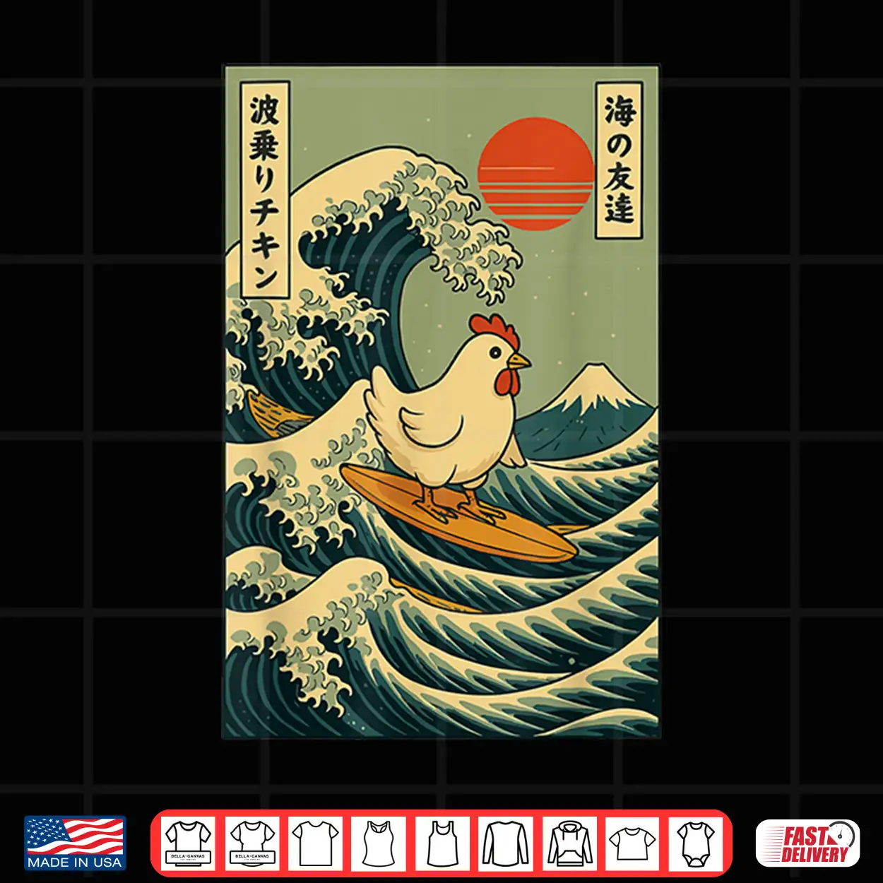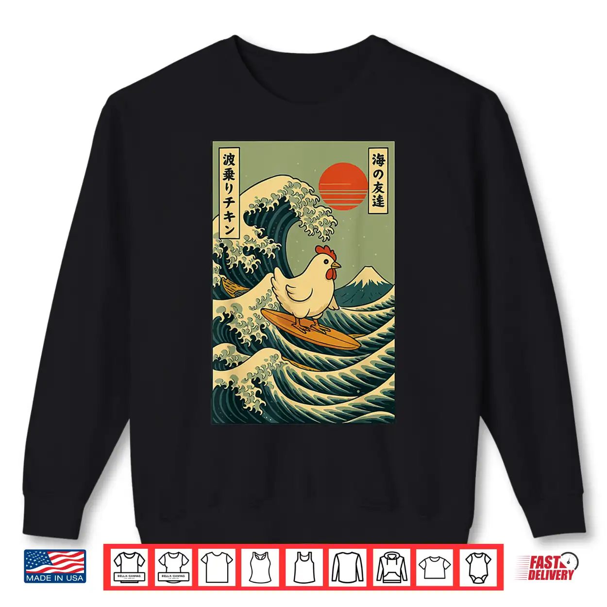 Chicken Surfing Japanese Wave Farmer Farming Shirt