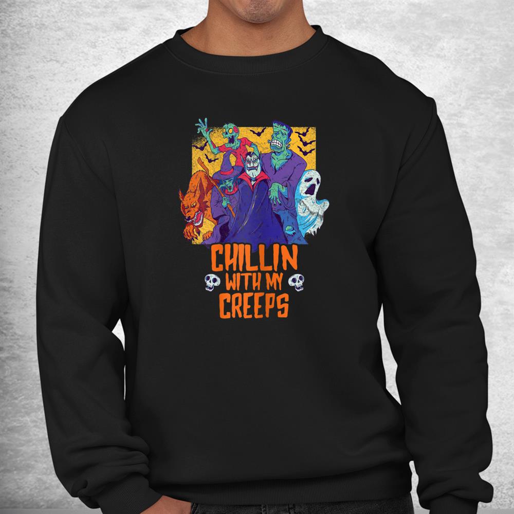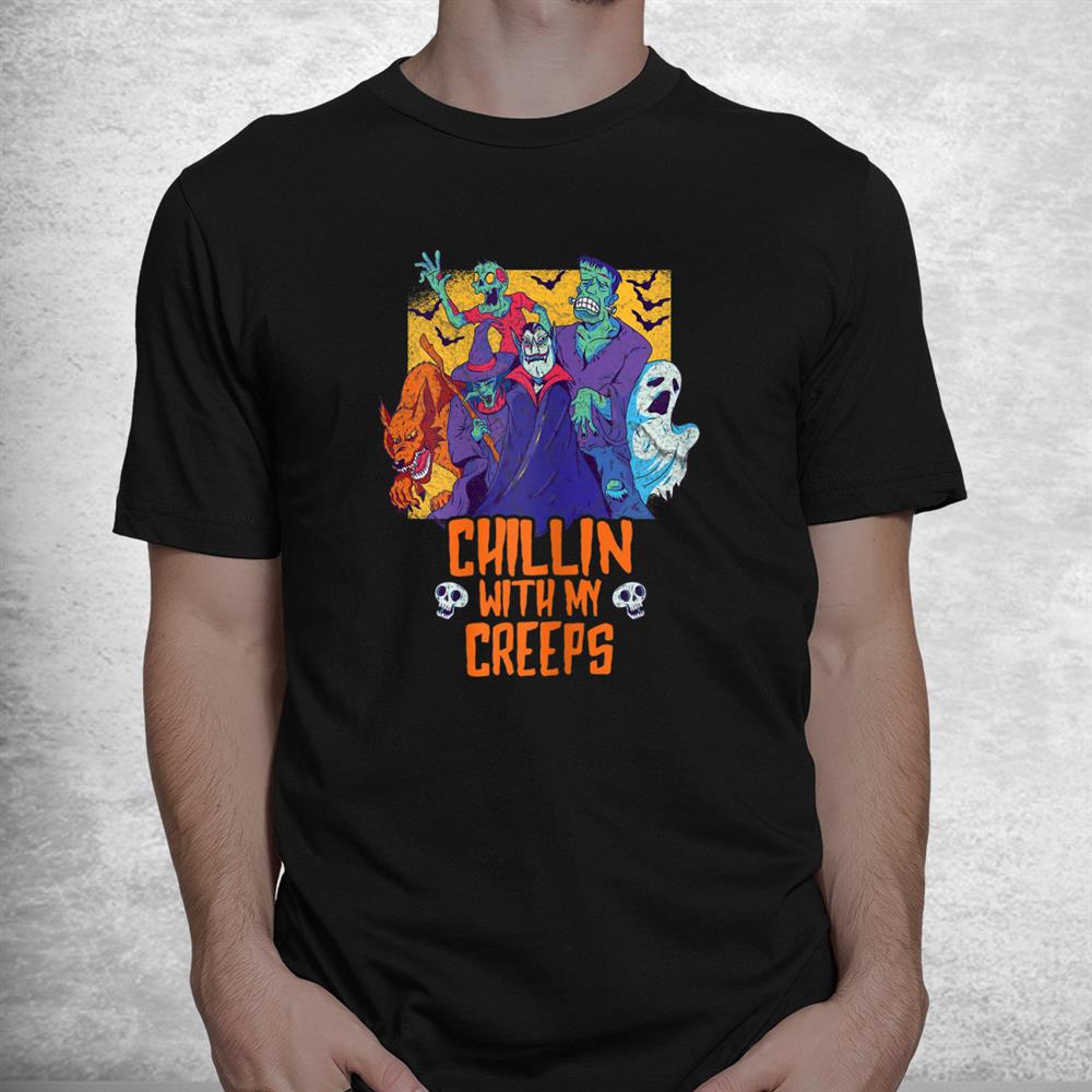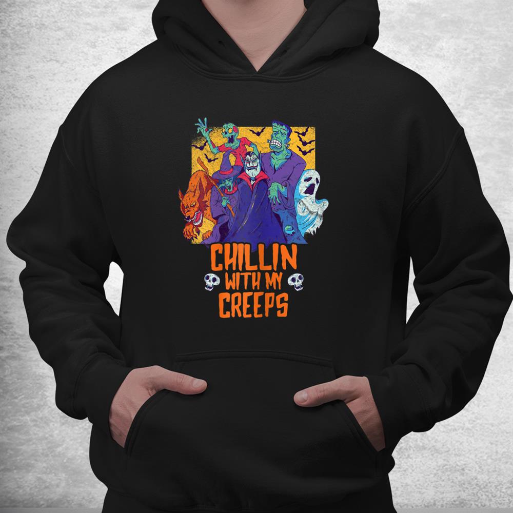 Chillin With My Creeps Funny Halloween Zombie Shirt, hoodie, sweatshirt, long sleeve and ladies T-shirt