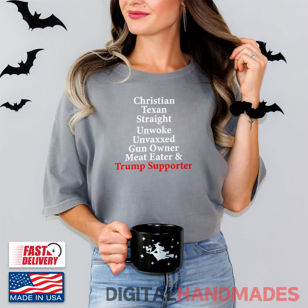 Christian Texan Straight Unwoke Unvaxxed Gun Owner Meat Eater Trump Supporter Shirt