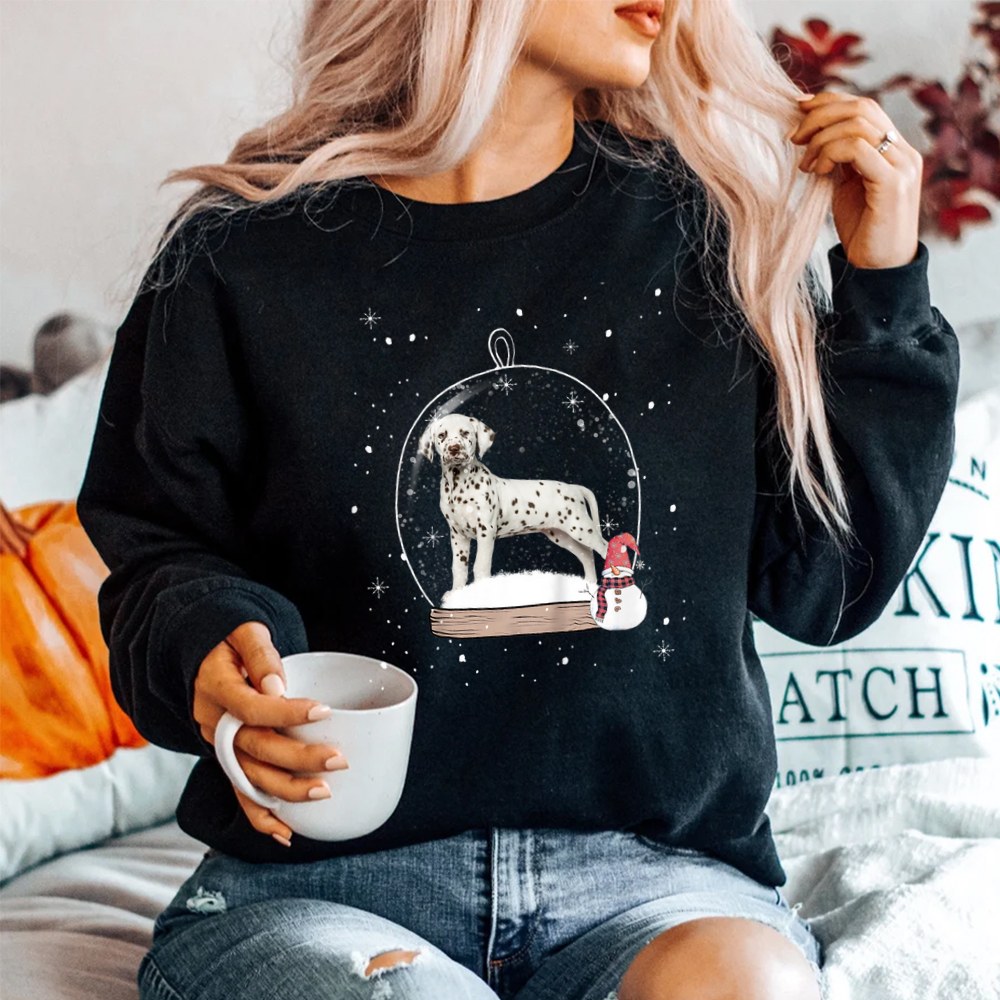 Christmas Brown Dalmatian Dog Snow Globe Pajama Shirt