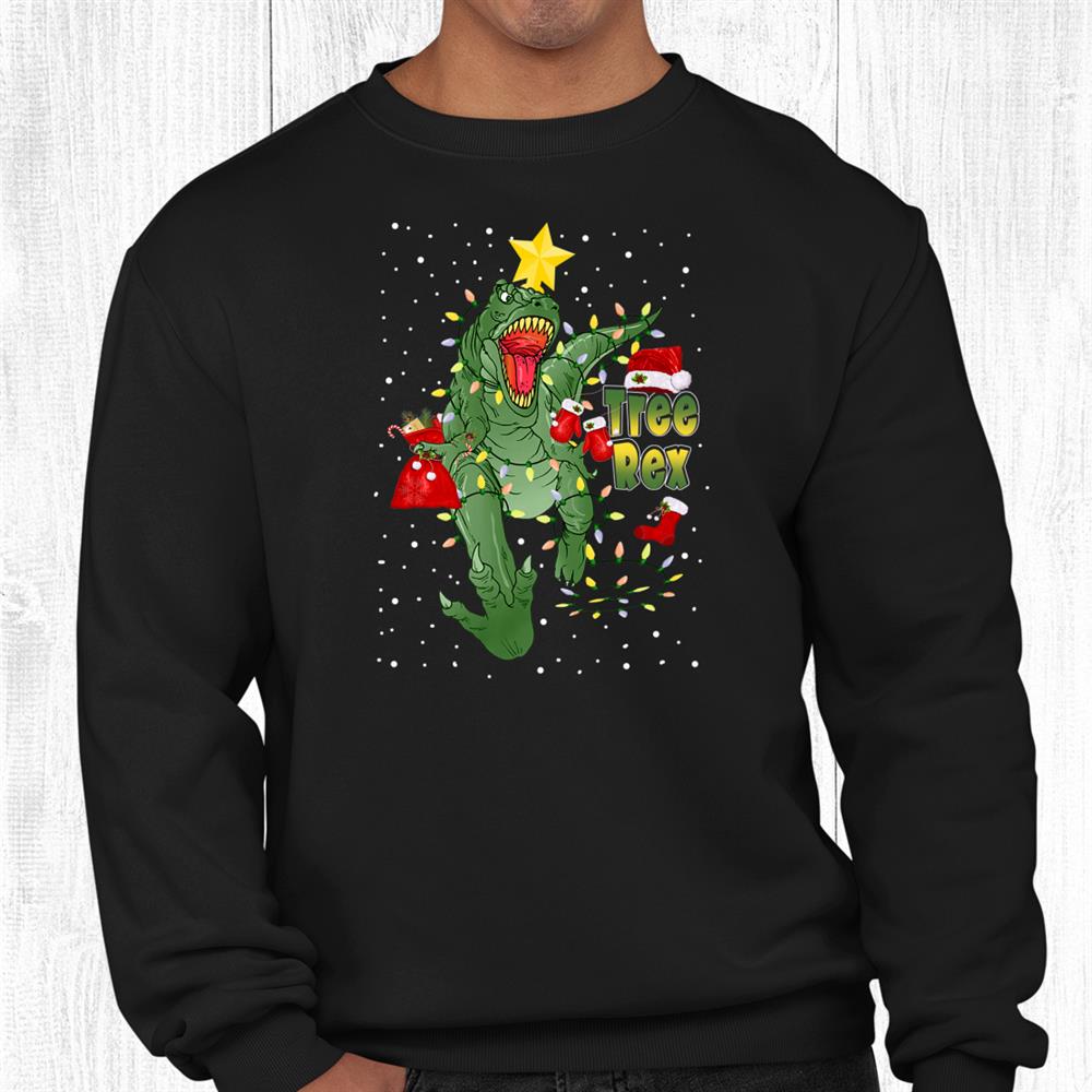 Christmas Dinosaur Tree Rex Lights Pajamas Xmas Shirt, hoodie, sweatshirt, long sleeve and ladies T-shirt