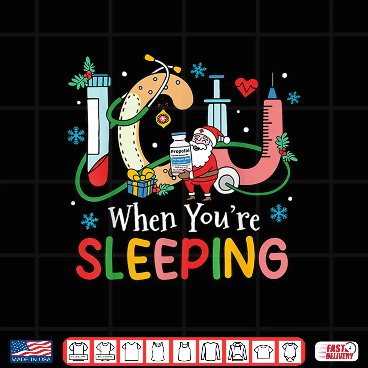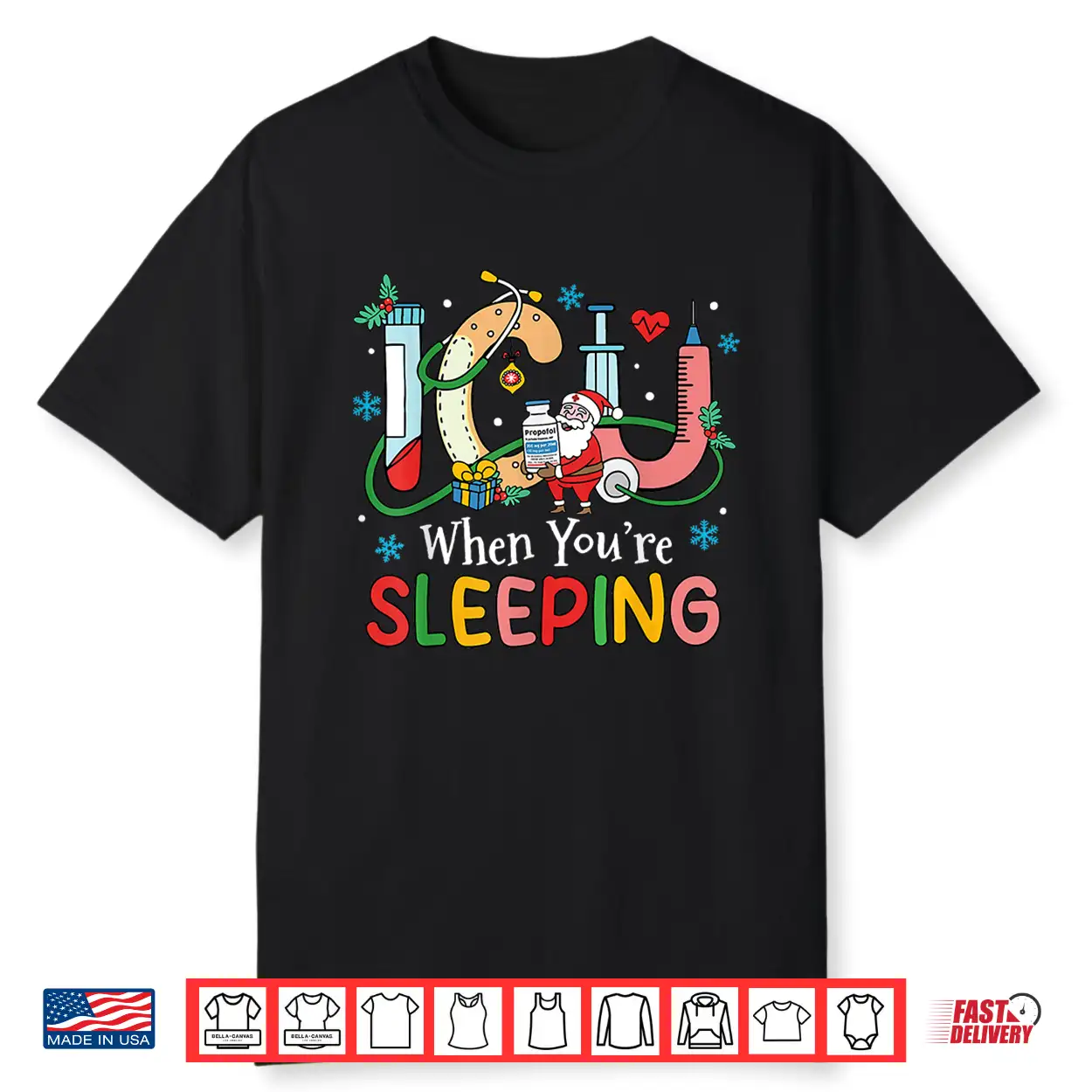 Christmas Icu When You’Re Sleeping Santa Christmas Nurses Shirt