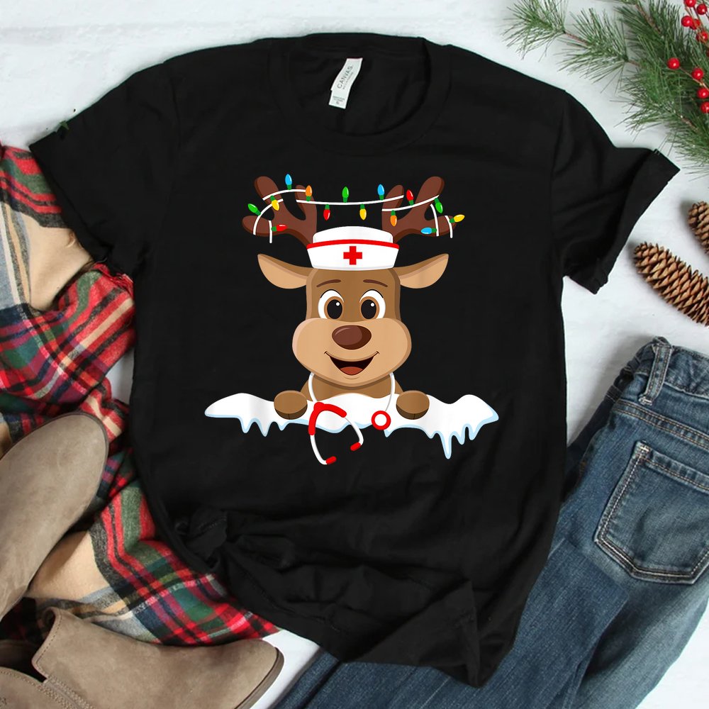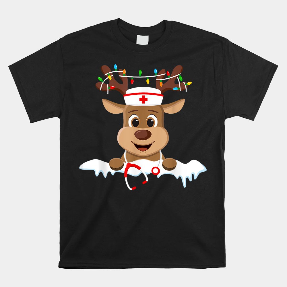 Christmas Nurse Love NICU RN ER Santa Reindeer Nurse Hat Elf Shirt