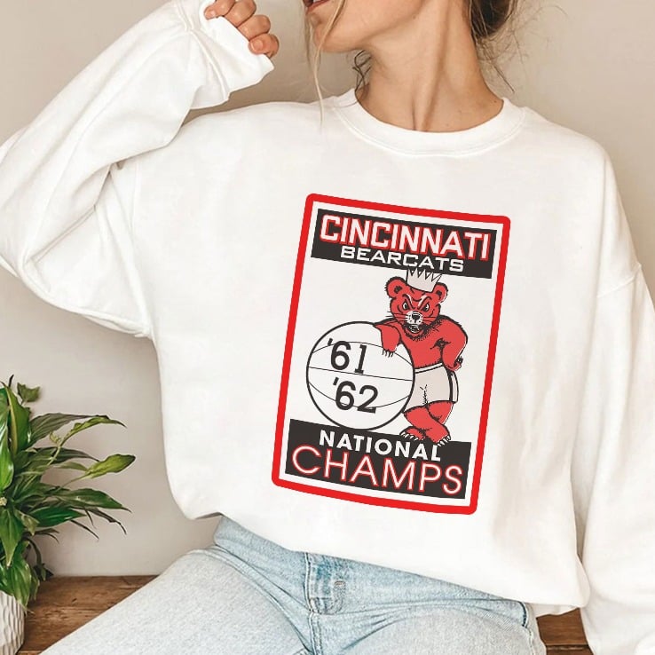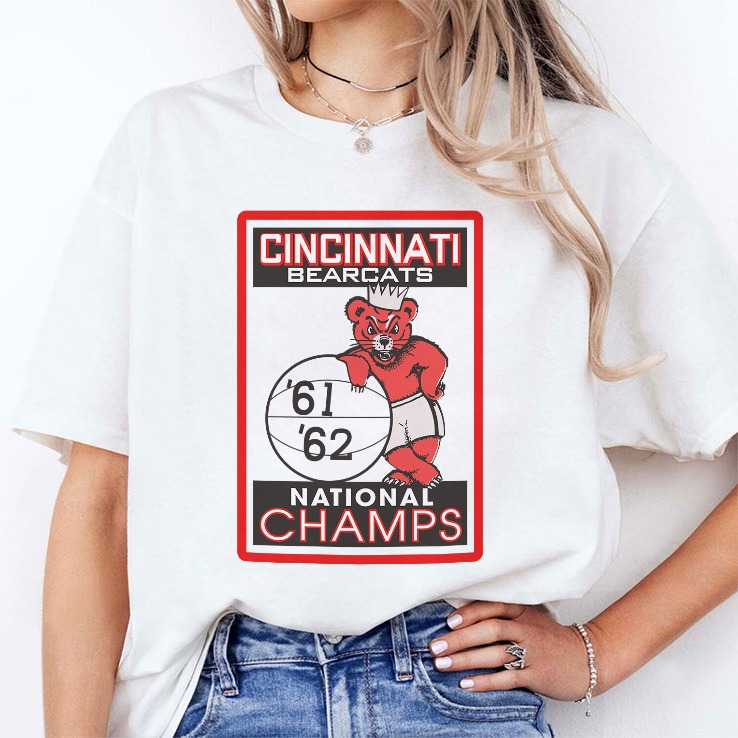 The t-shirt stands out with the logo of Cincinnati Bearcats and the phrase “Cincinnati Bearcats National Champs 61 62”. It reminds us of the old victory of the Cincinnati Bearcats.