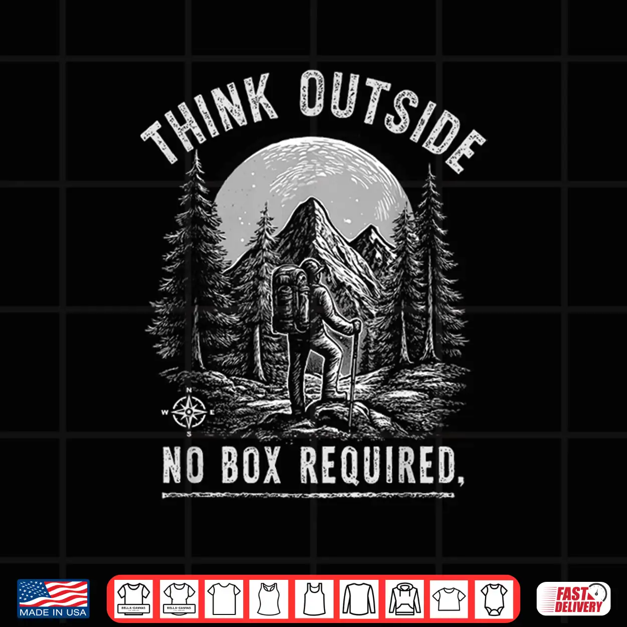 Funny, Hiking, Camping, Outdoors, No Box Required, Motivational, Think Outside, Intellectual, Minimalist, Witty