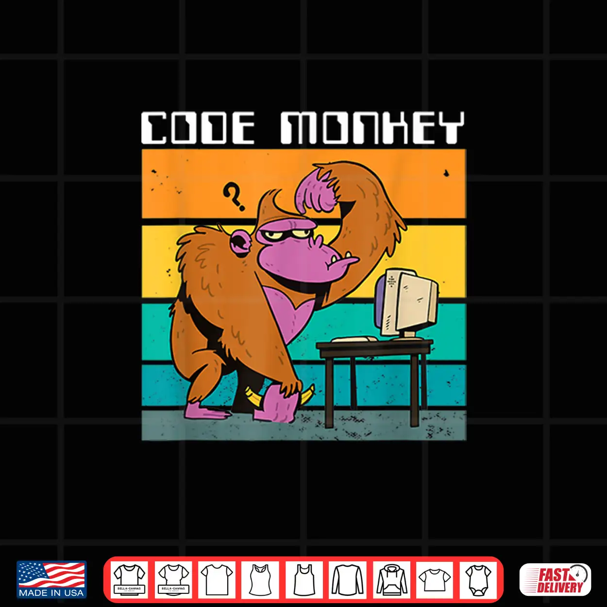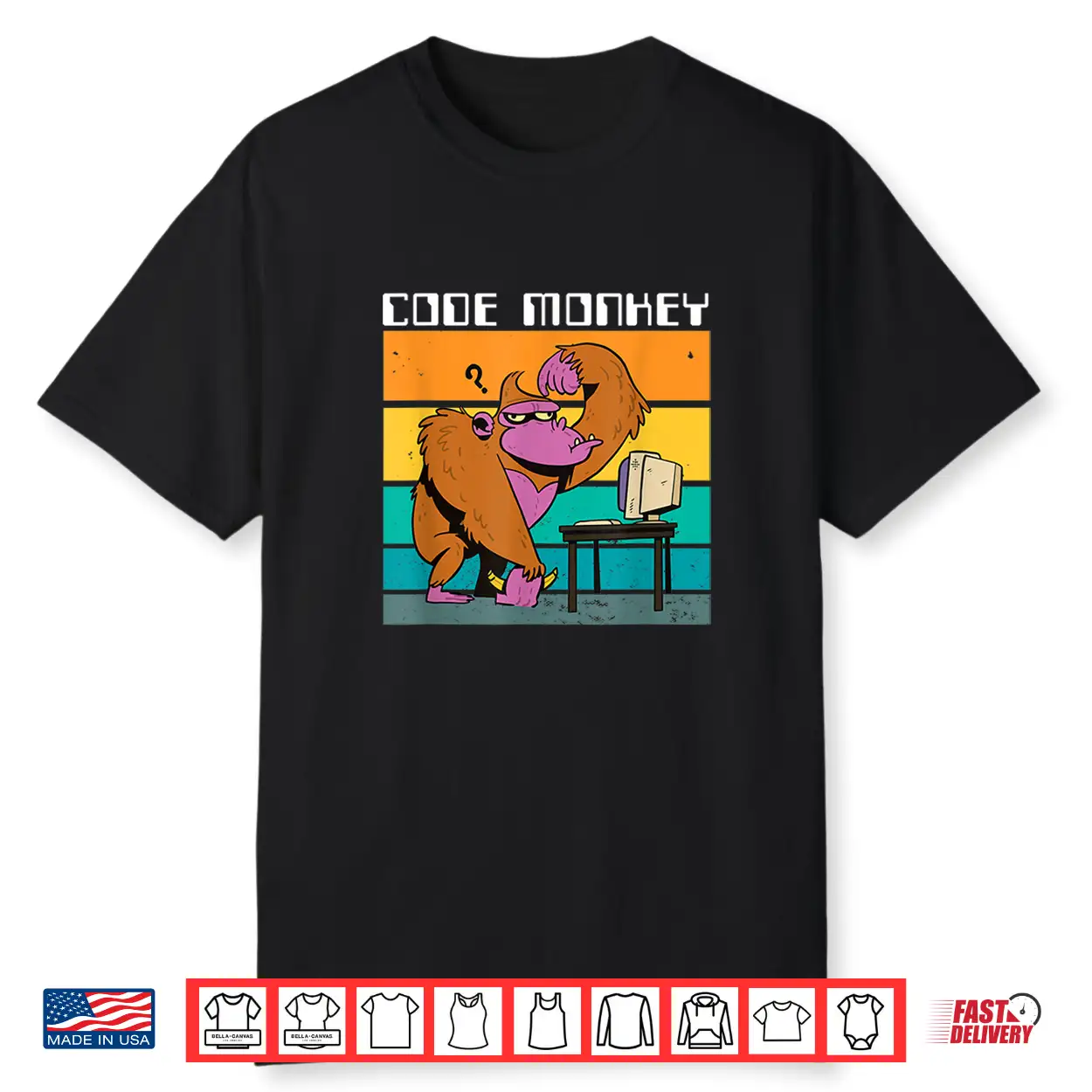 Code Monkey Gorilla Retro Coding Coder Pc Nerd Geek Web Gift Shirt