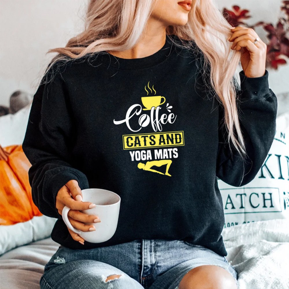 Coffee Cats And Yoga Mats Cute Family Shirt