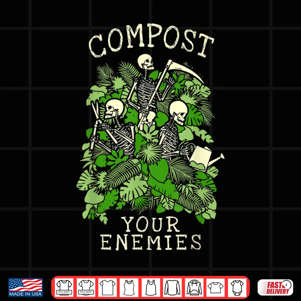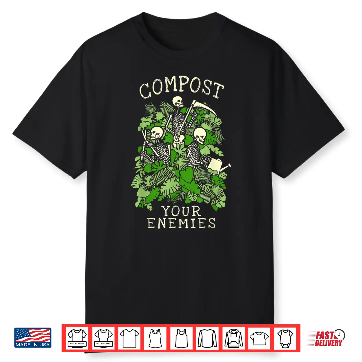 Compost Your Enemies Gardening Goth Skeleton Gardener Shirt