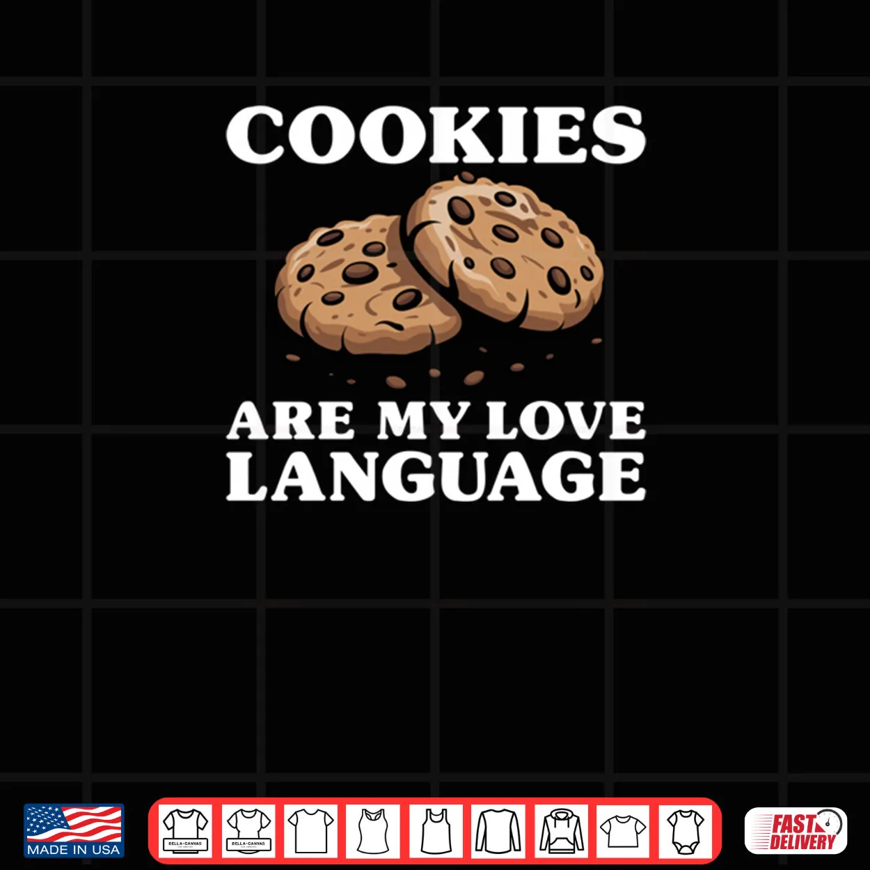 cookies are my love language, funny cookie shirt, baking humor, cookie lover, food quote, witty saying, unique design, dessert humor, baker gift, sweet