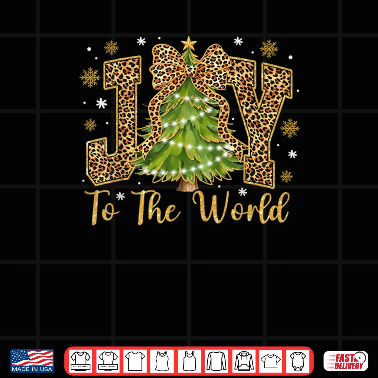 Coquette Bow Leopard Christmas Joy to The World Xmas Tree Shirt, Coquette Bow, Leopard Print, Christmas, Joy to The World, Xmas Tree, Trendy Holiday