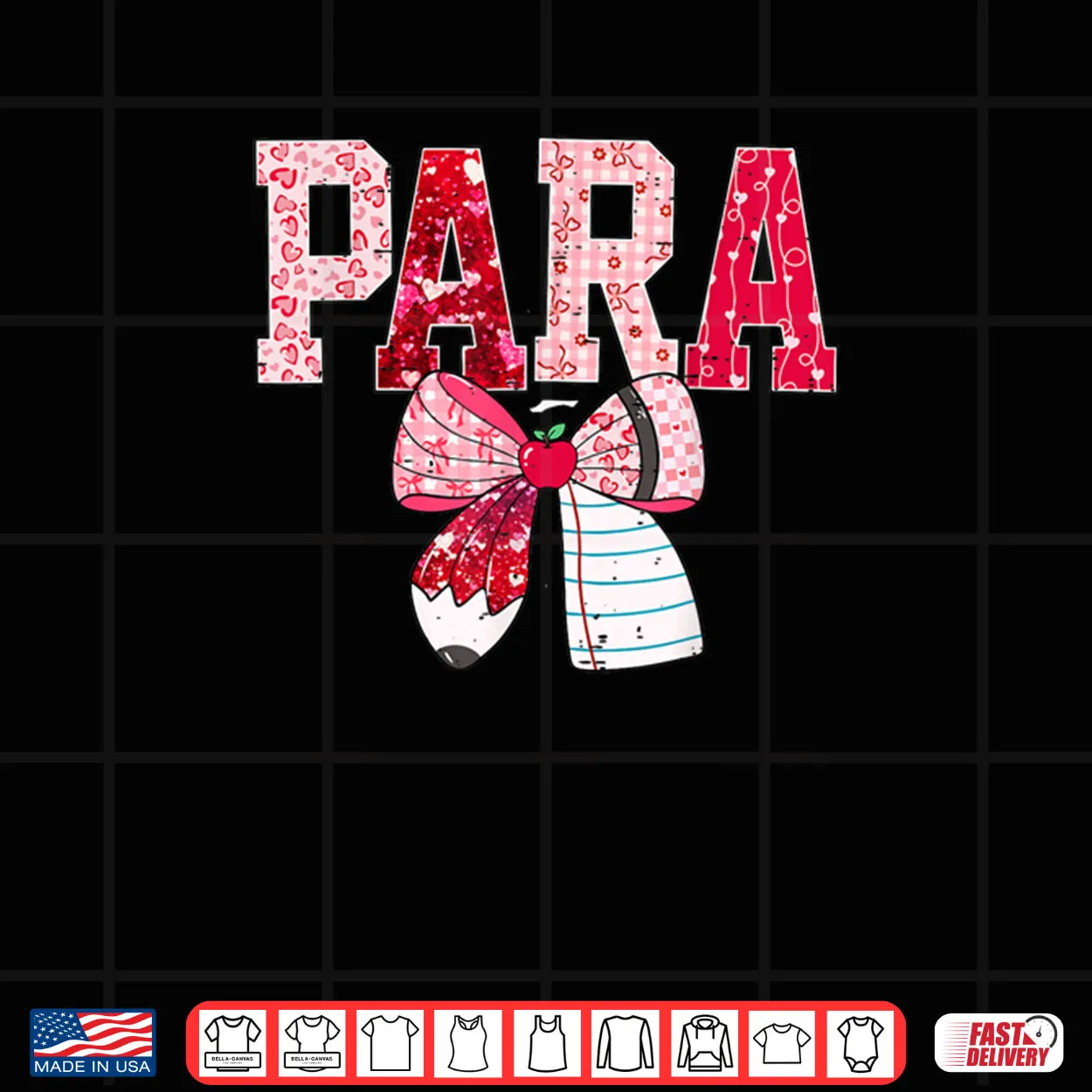Coquette Bow Pencil Para Teacher Valentine Red Hearts Shirt