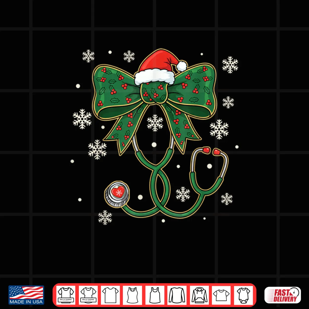 Coquette Bow Stethoscope Christmas Nurse Santa Hat Nursing Shirt