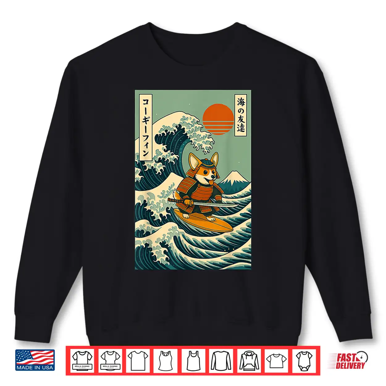 Corgi Samurai Surfing Japanese Wave Katana Shirt