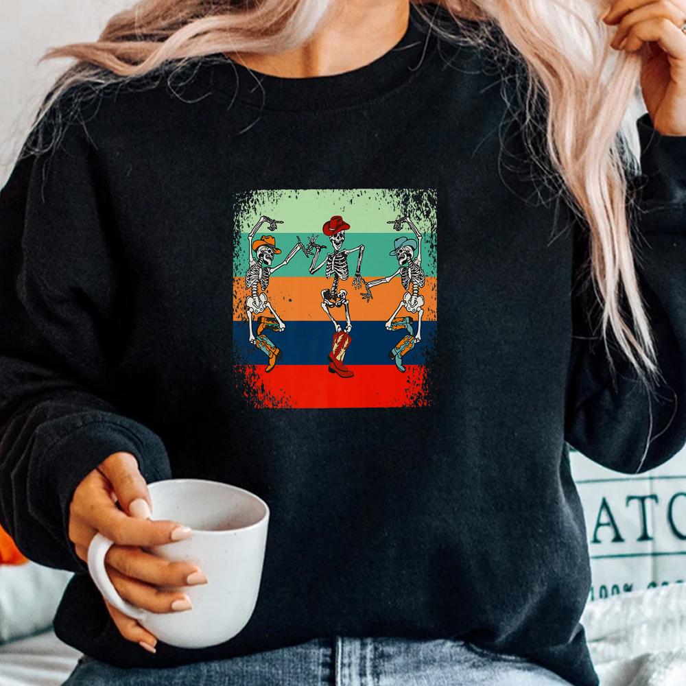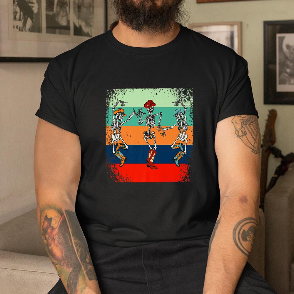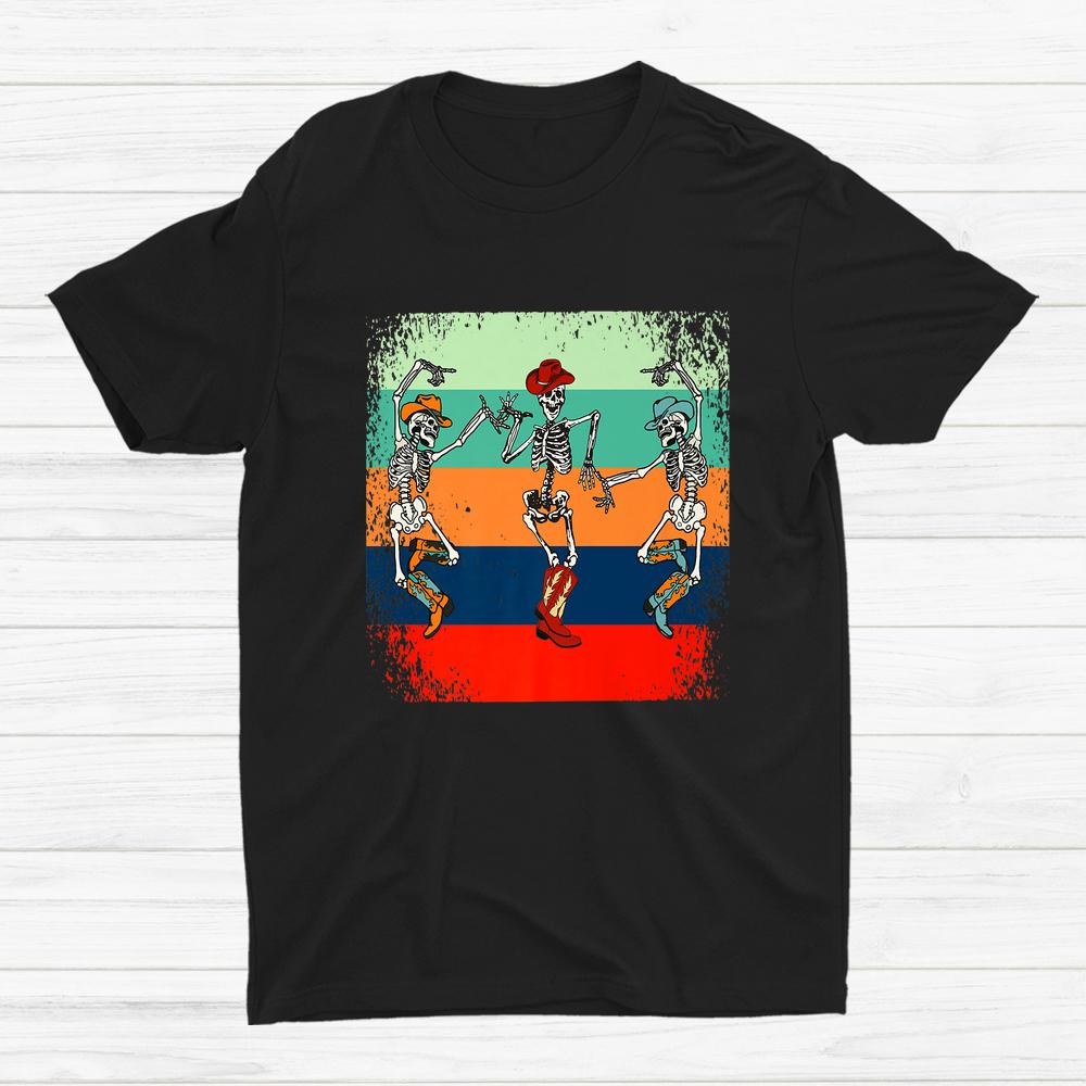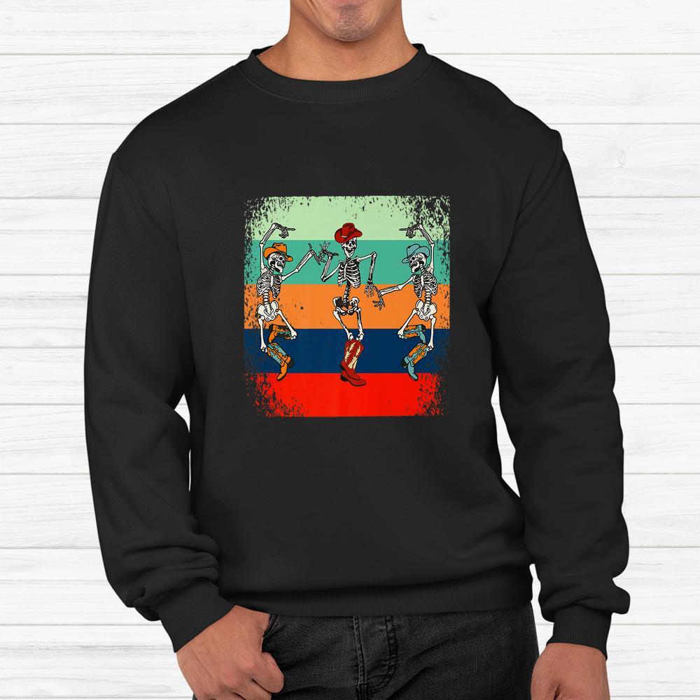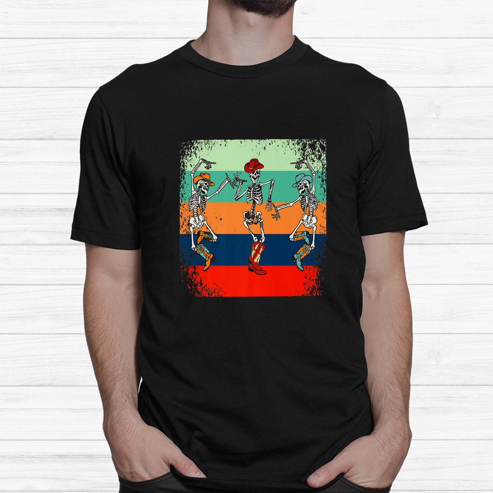 Cowboy Hat Sunset Dancing Skeleton Halloween Shirt