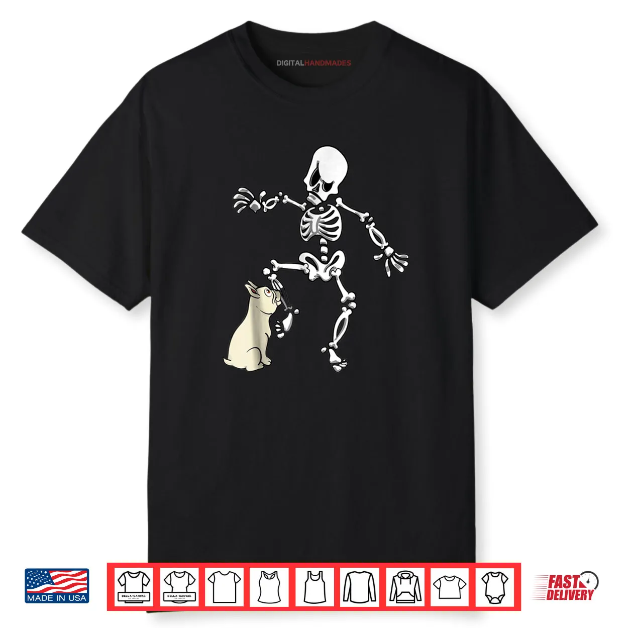 Cream French Bulldog Biting Skeleton Leg Halloween Shirt