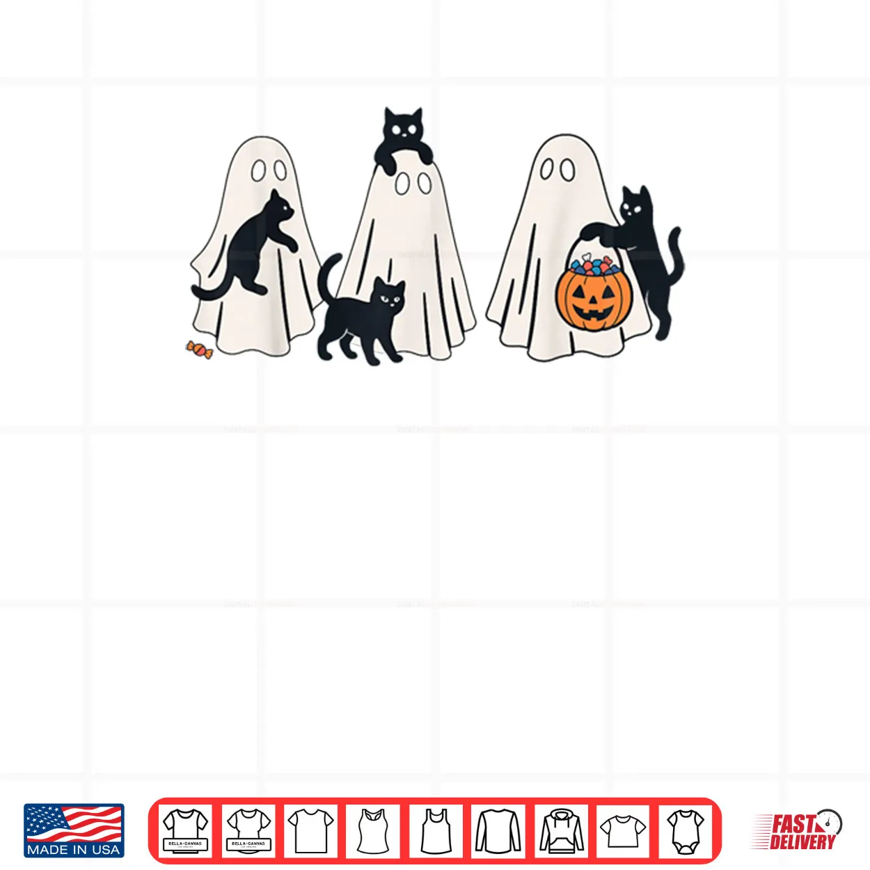 Cute Black Cats and Ghosts Funny Halloween Costume Shirt