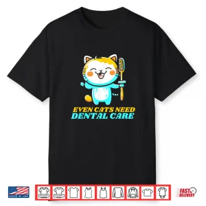 Cute Cat With Toothbrush Kawaii Dental Care Dentists Shirt