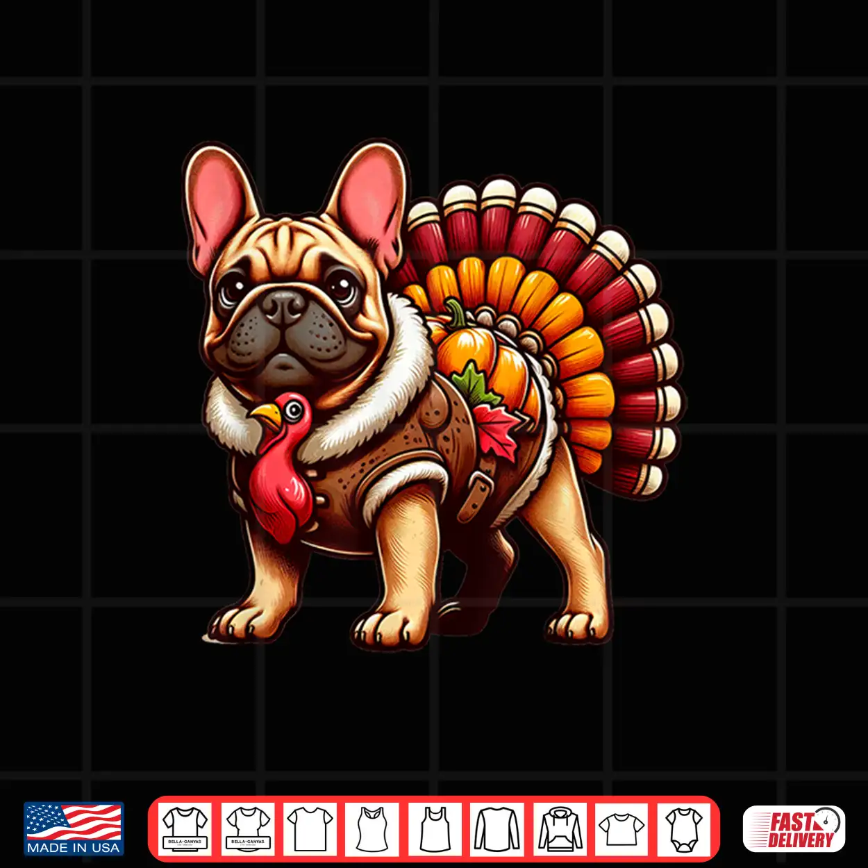 Cute Dog Frenchie Thanksgiving Kids Teen Girl Boy Shirt