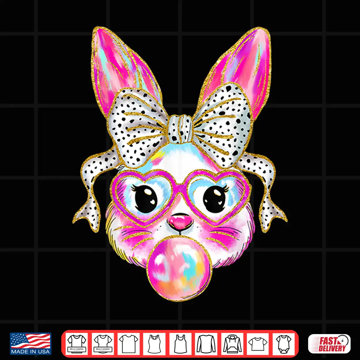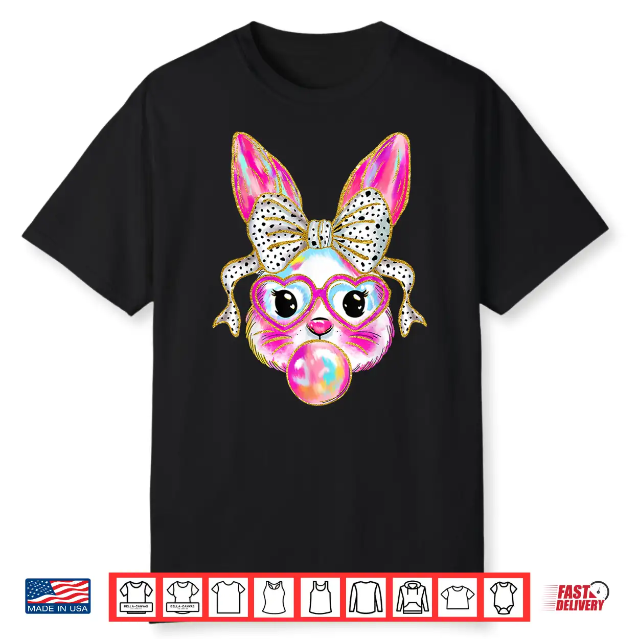 Cute Easter Bunny Bubble Gum Coquette Bow For Girls Women Shirt