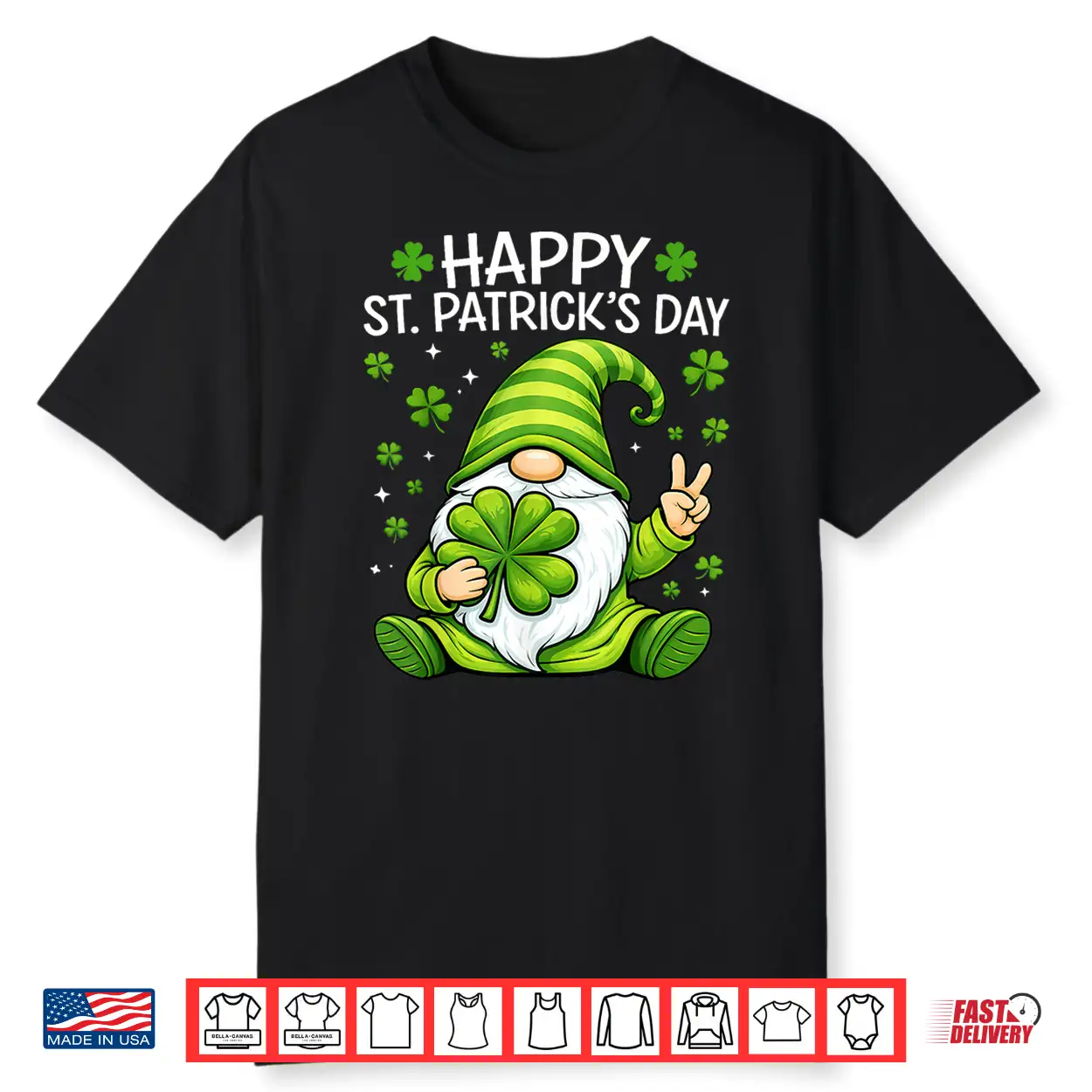 Cute Gnome Lucky Shamrock Happy St Patrick’S Day Women Girls Shirt