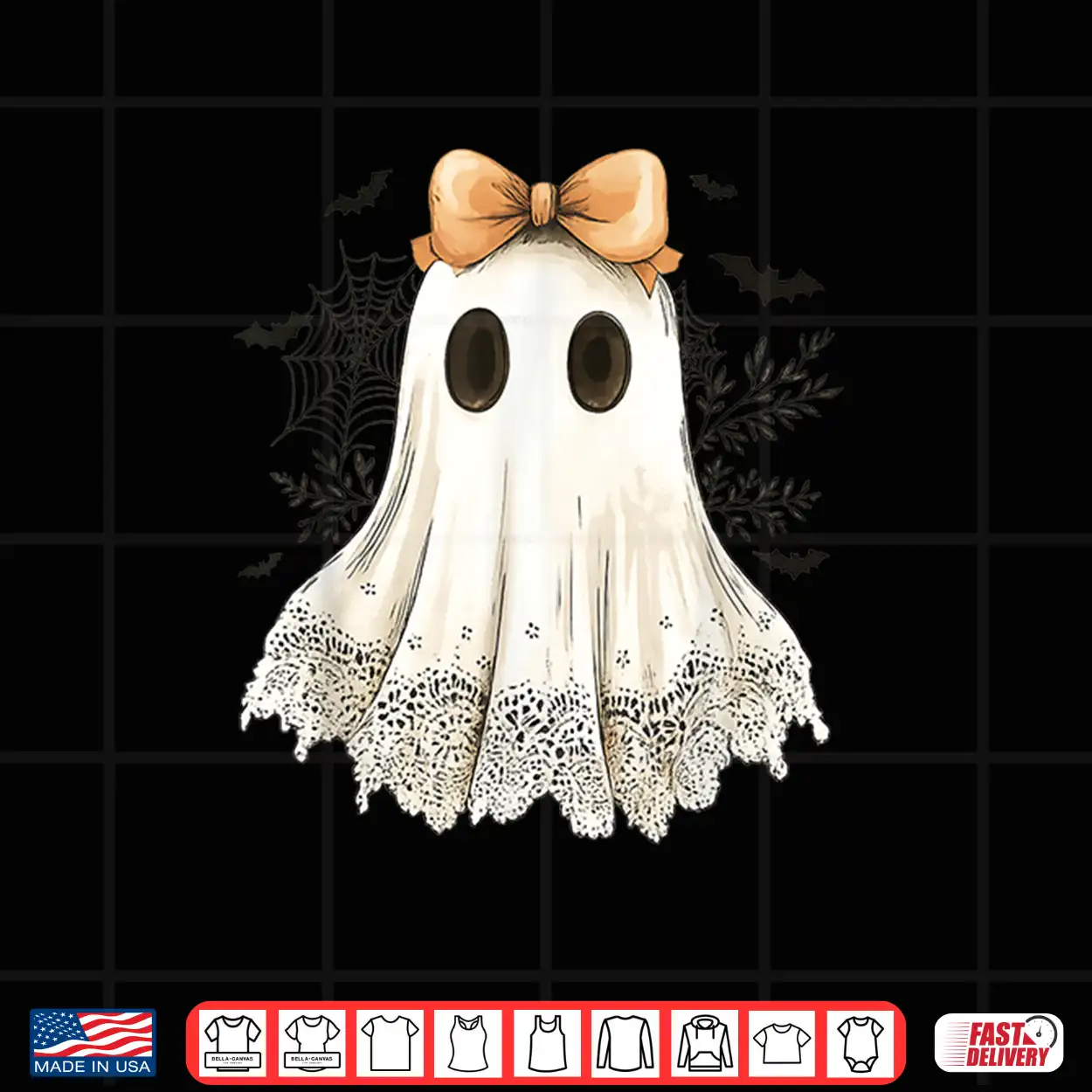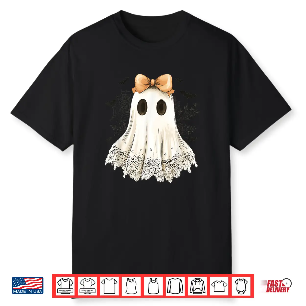 Cute Halloween Ghost With Bow Lace Spooky Style Shirt