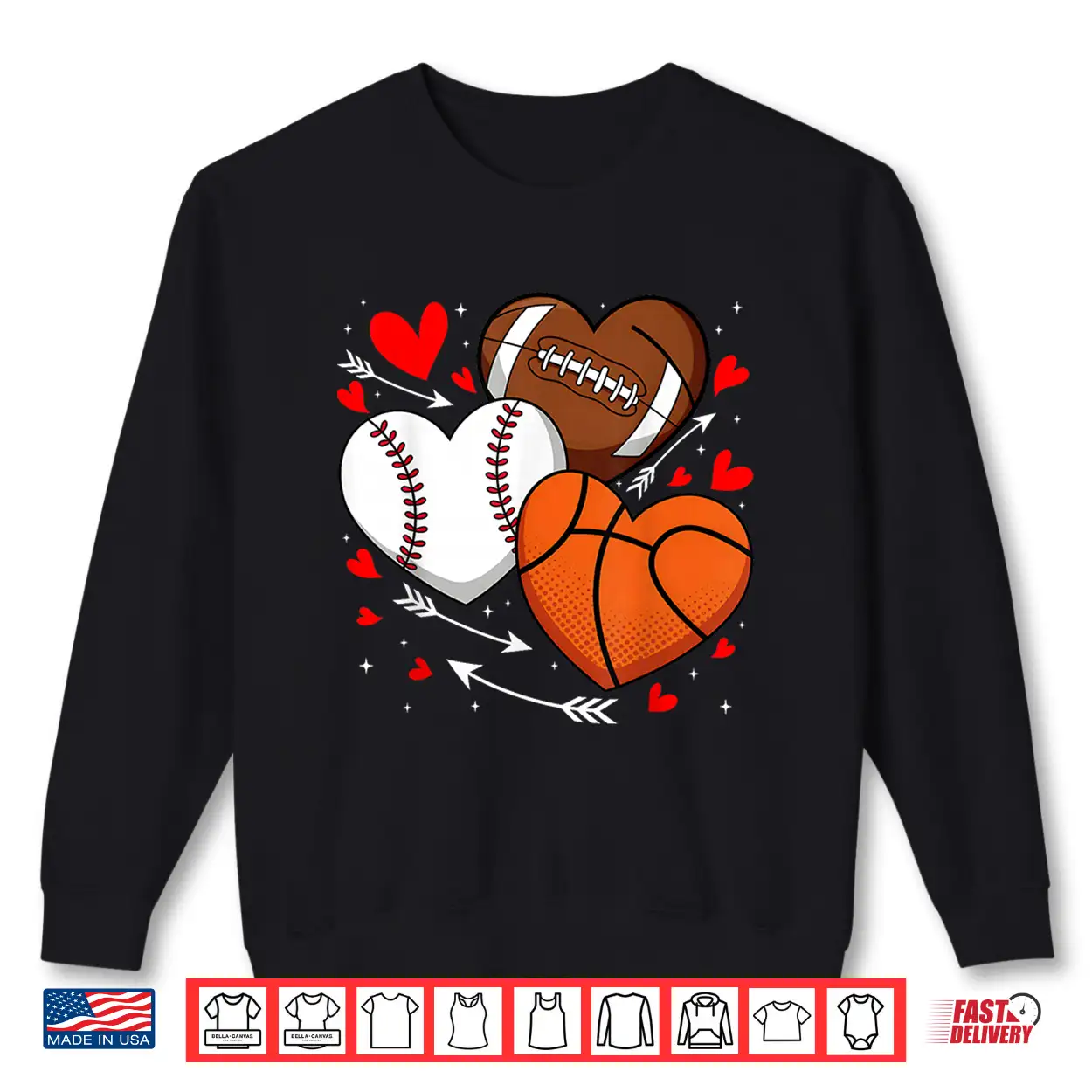 Cute Heart Baseball Basketball Football Valentine Boy Men Shirt