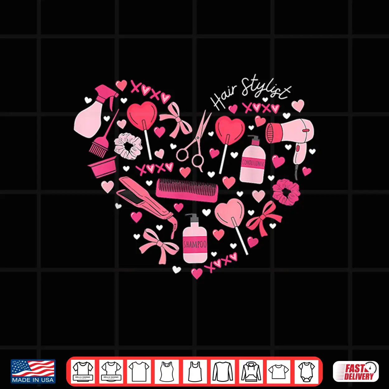 Cute Heart Hair Stylist Valentine Day Cosmetologist Shirt