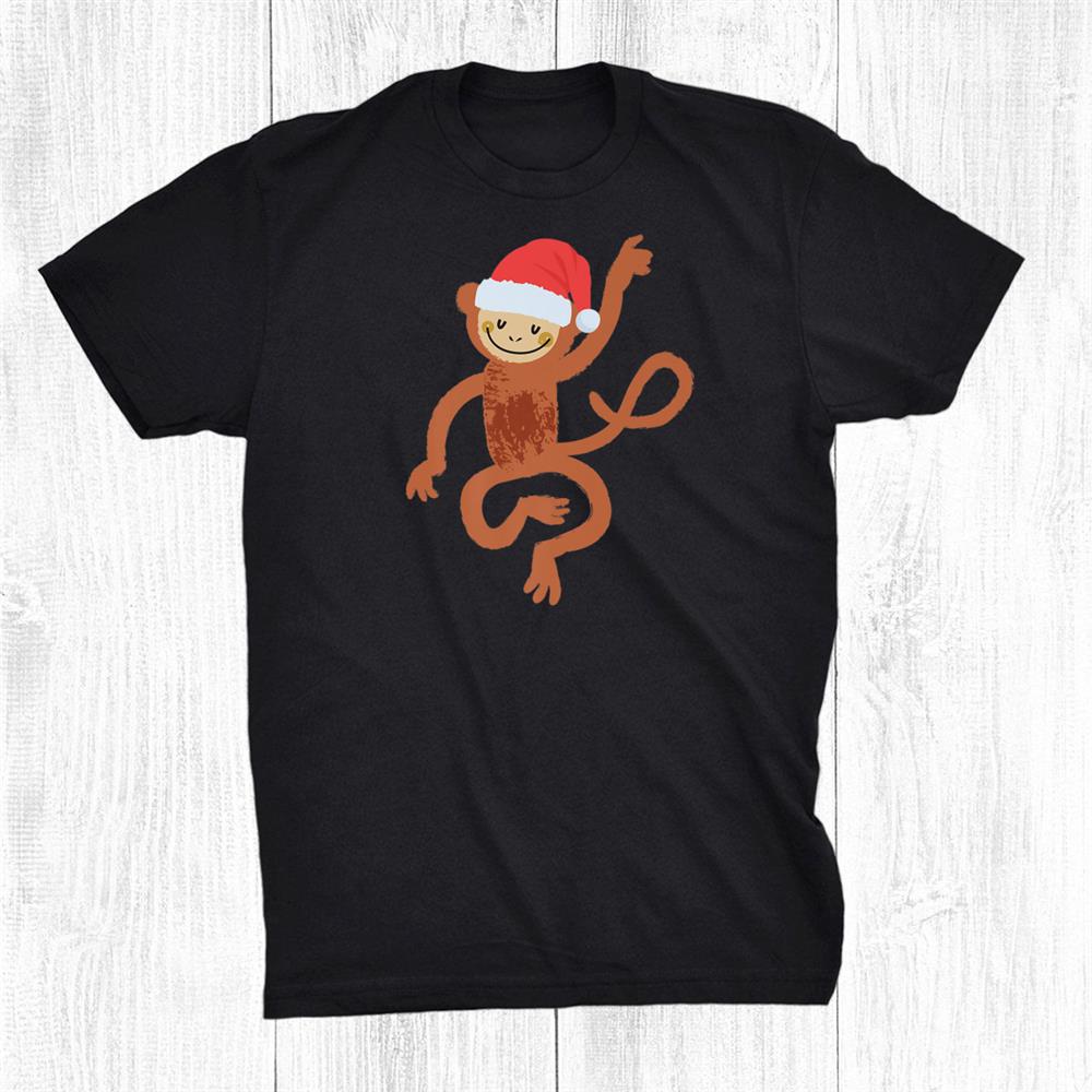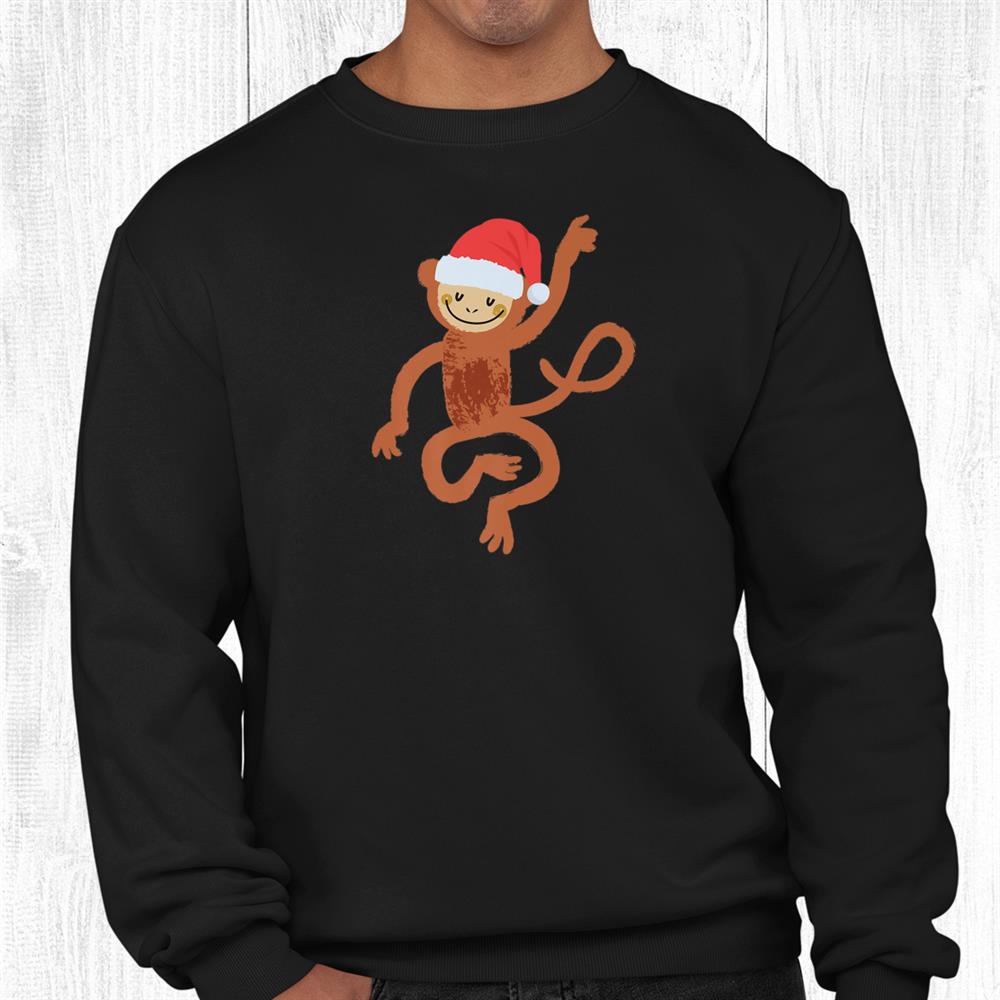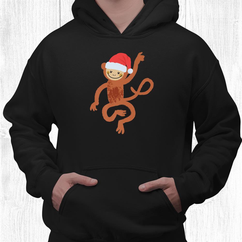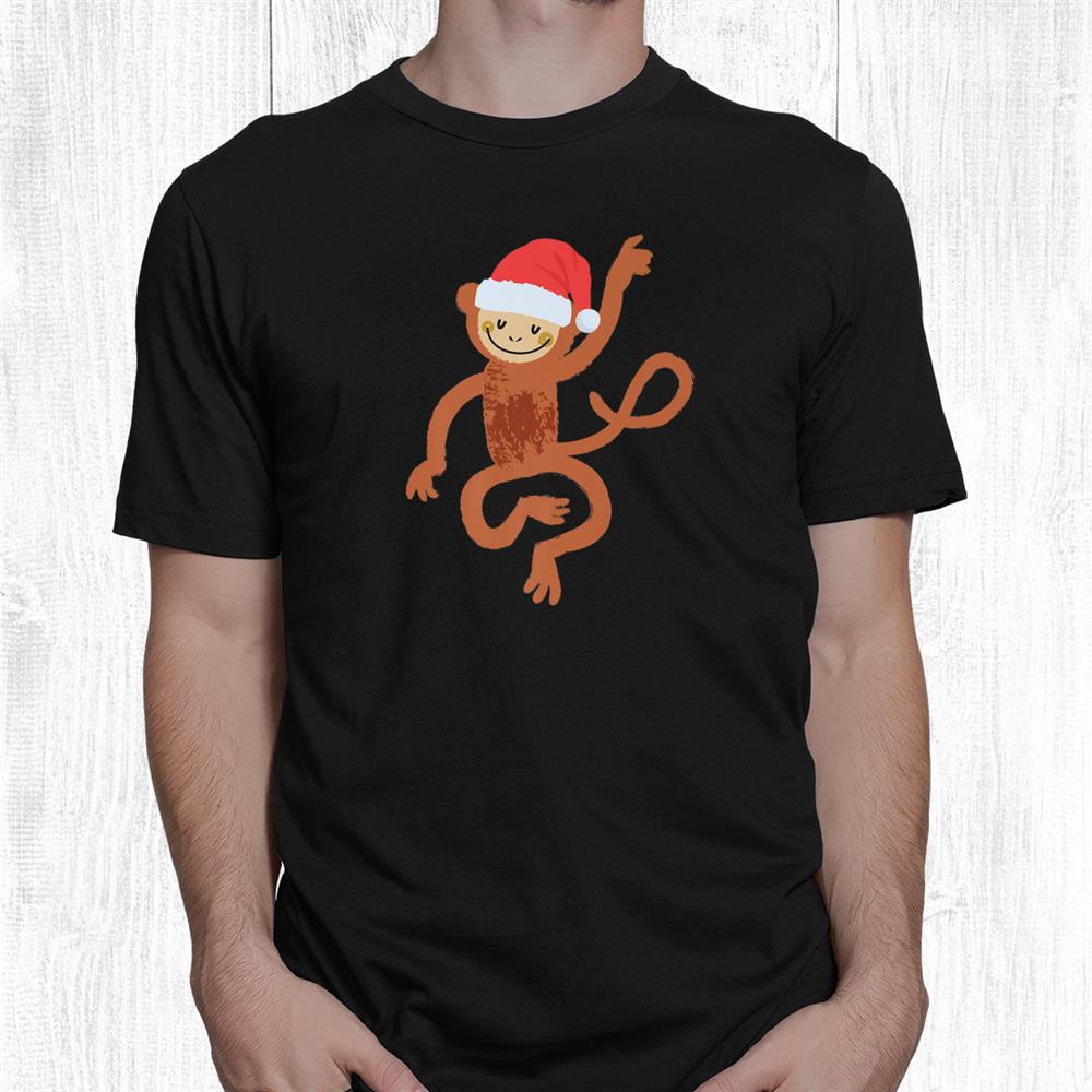 Cute Monkey Shirt Fun Santa Hat Image Funny Christmas Cool Shirt, hoodie, sweatshirt, long sleeve and ladies T-shirt