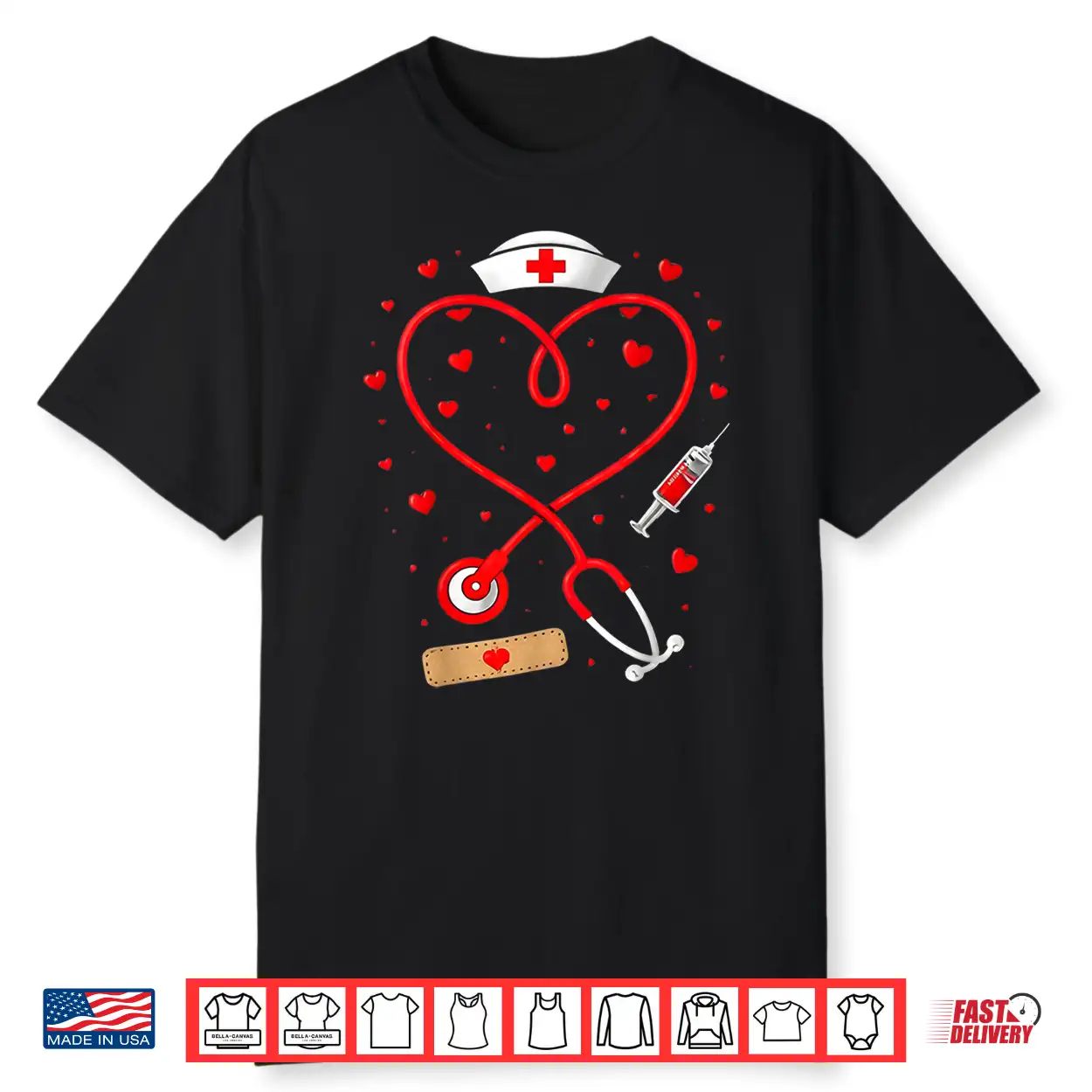 Cute Stethoscope Heart Design For Nurse Valentine Days Nurse Shirt