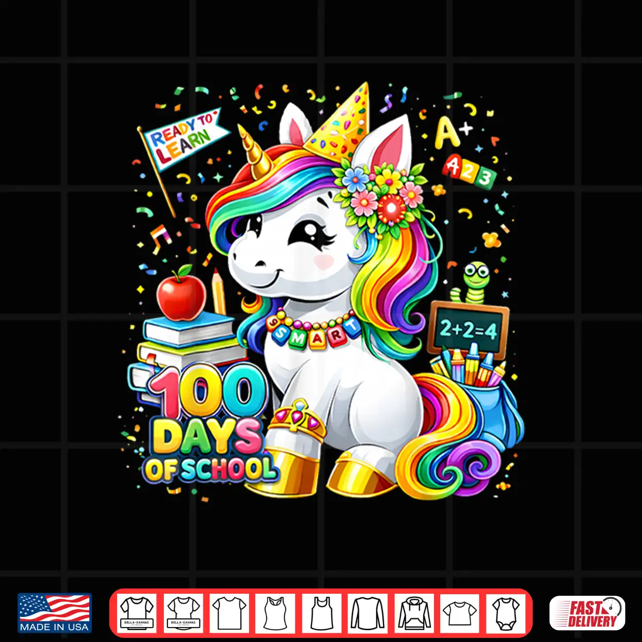 Girls, Unicorn, shirt, 100 Days Smarter, Kids, 100th Day Of School