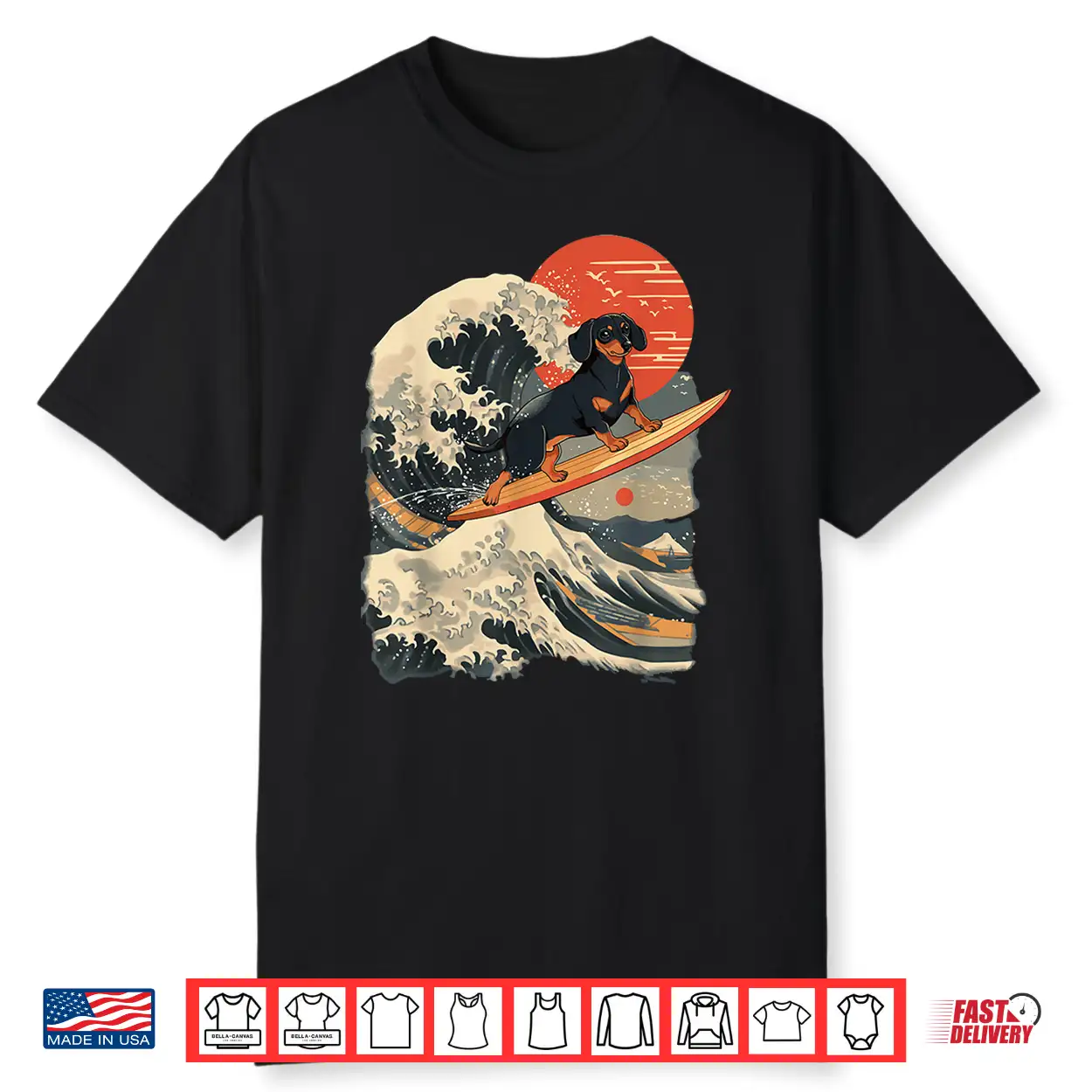 Dachshund Surfing Japanese Great Wave Shirt