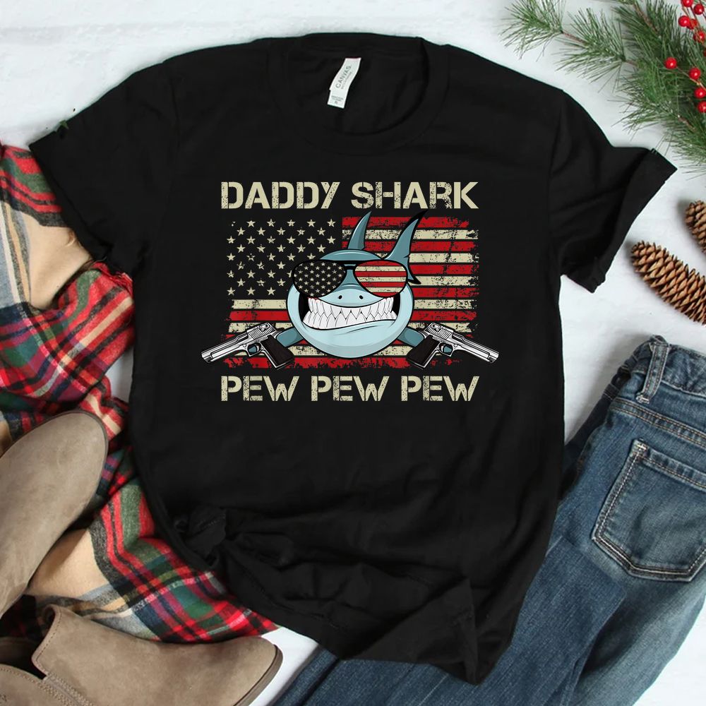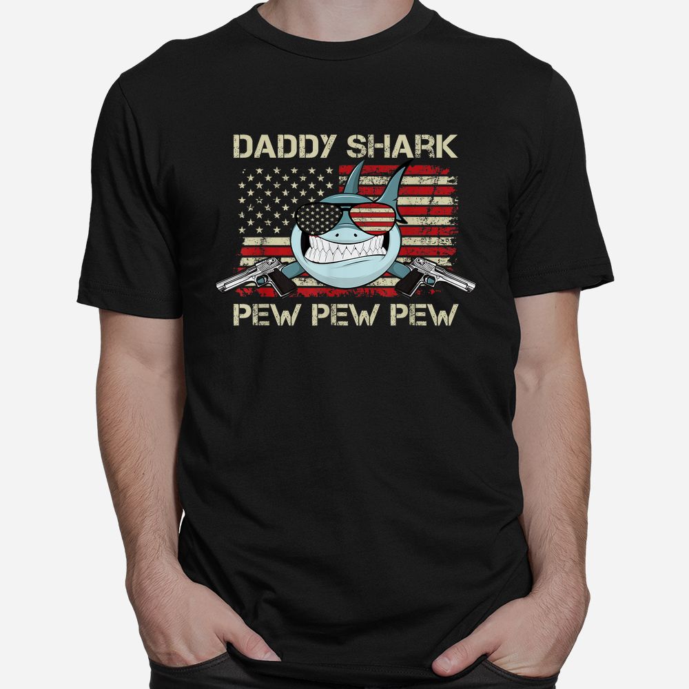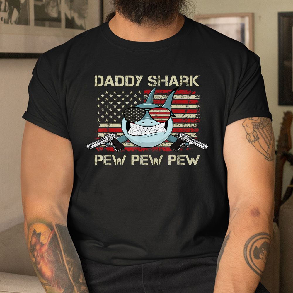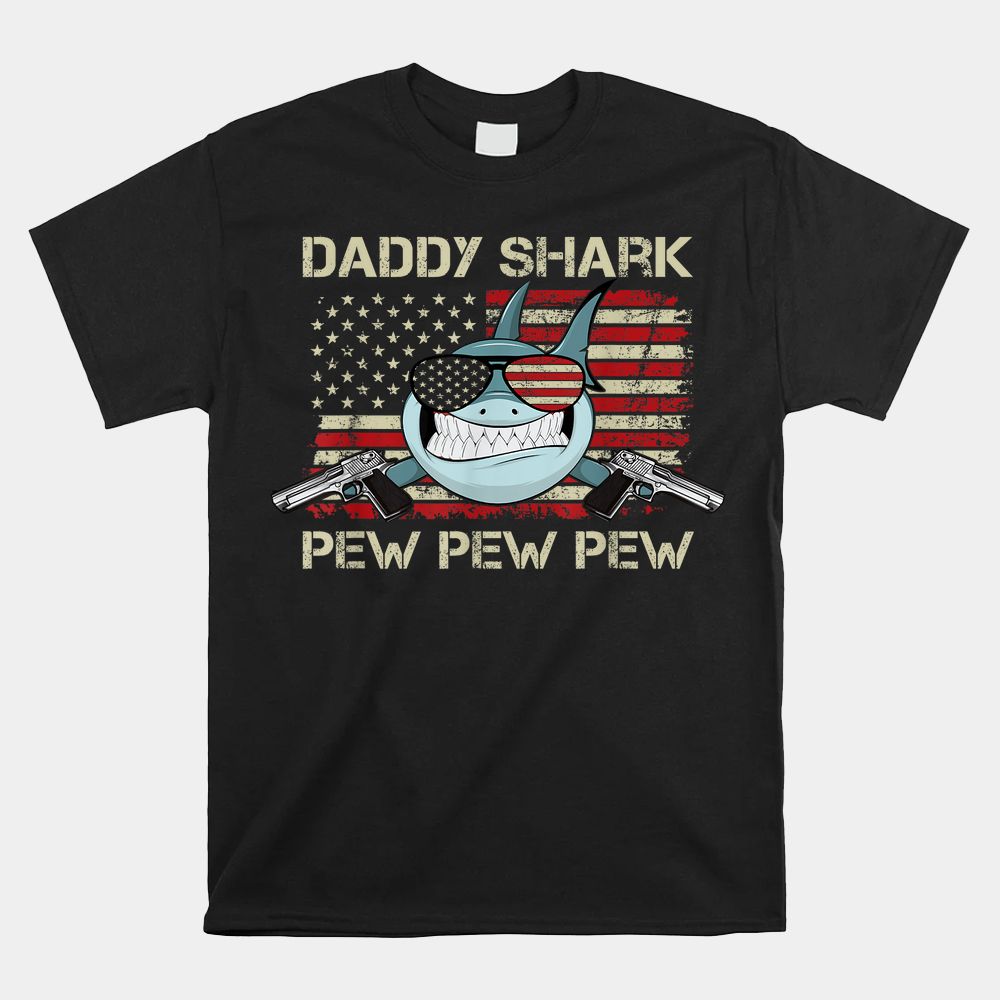 Daddy Shark Pew Pew USA Gun Loving Dad Shirt