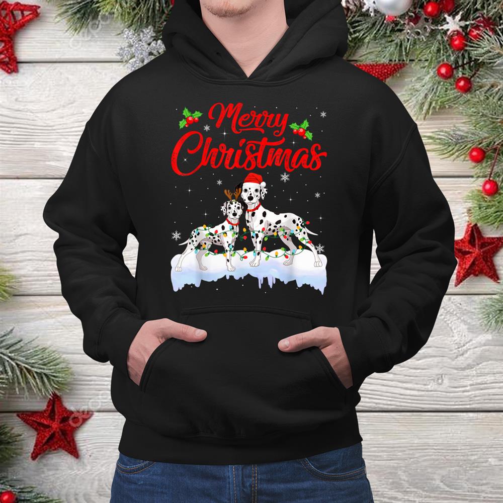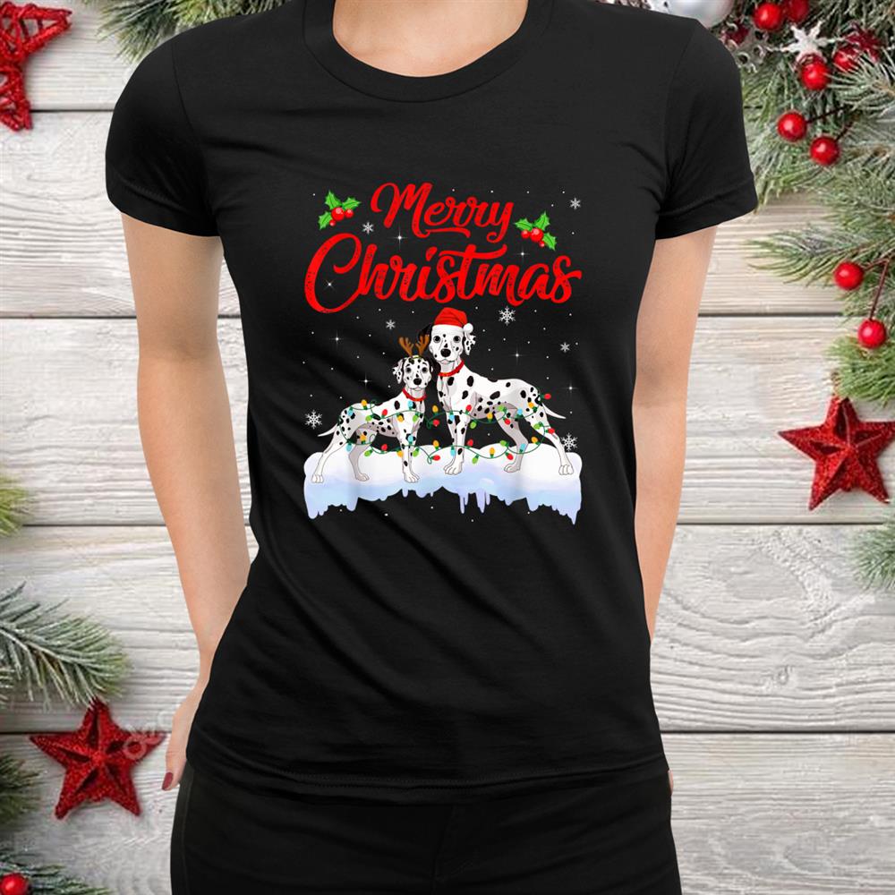 Dalmatian With Lights Funny Dog Santa Hat Christmas Shirt